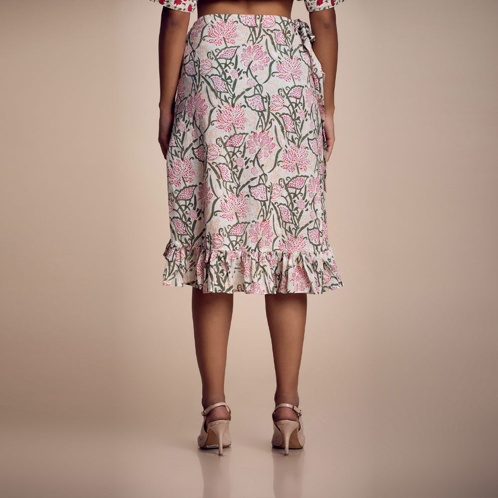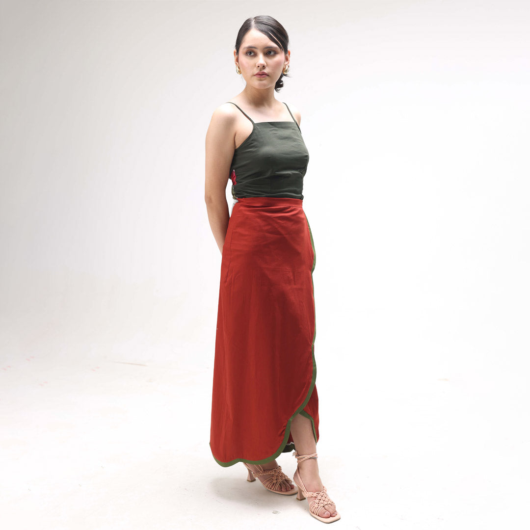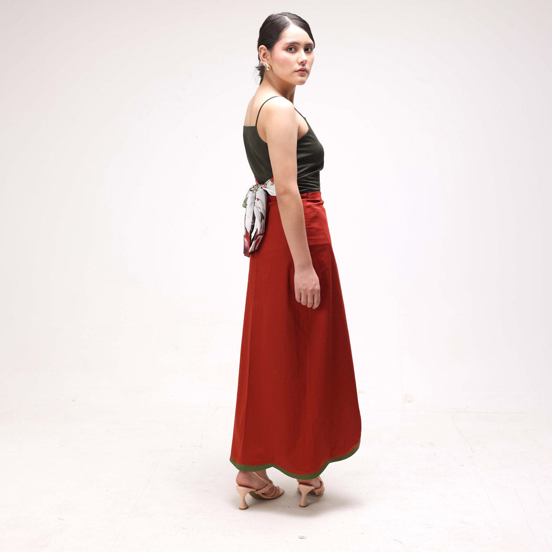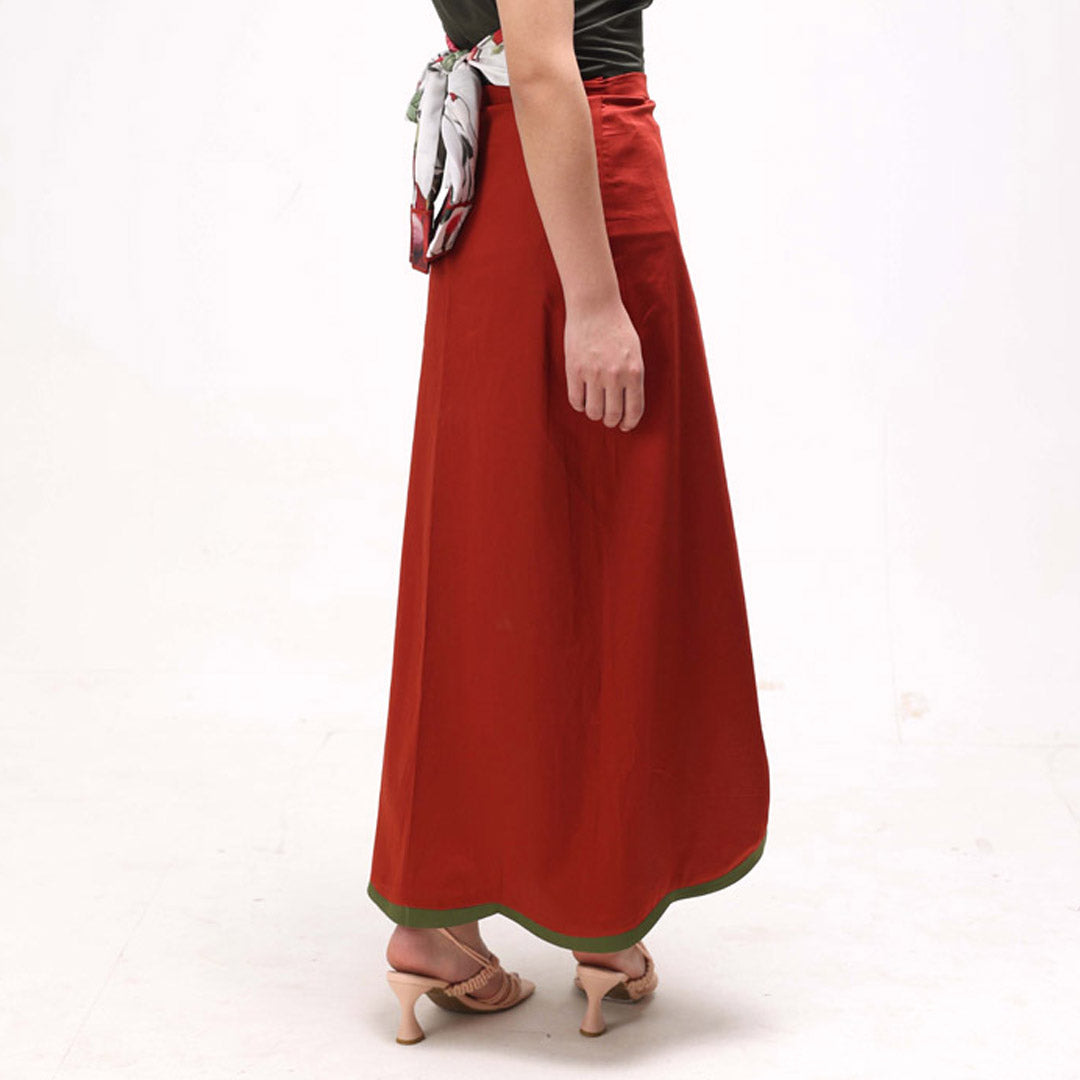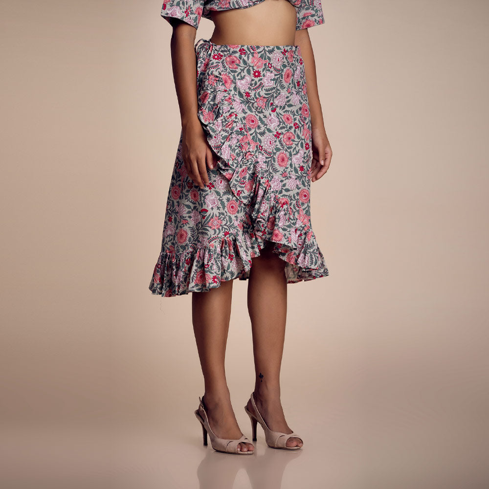 Garden Delight: Red-Green Floral Printed Cotton Skirt for Stylish Flair