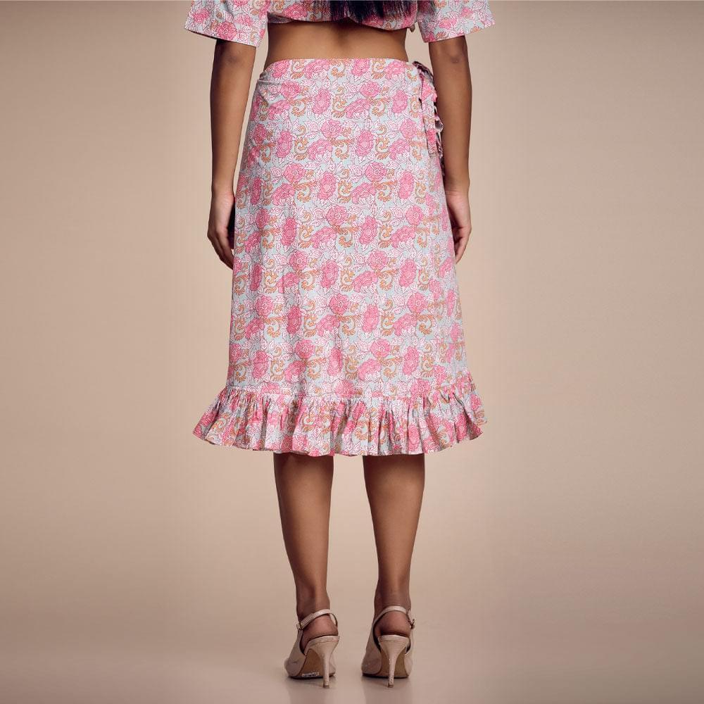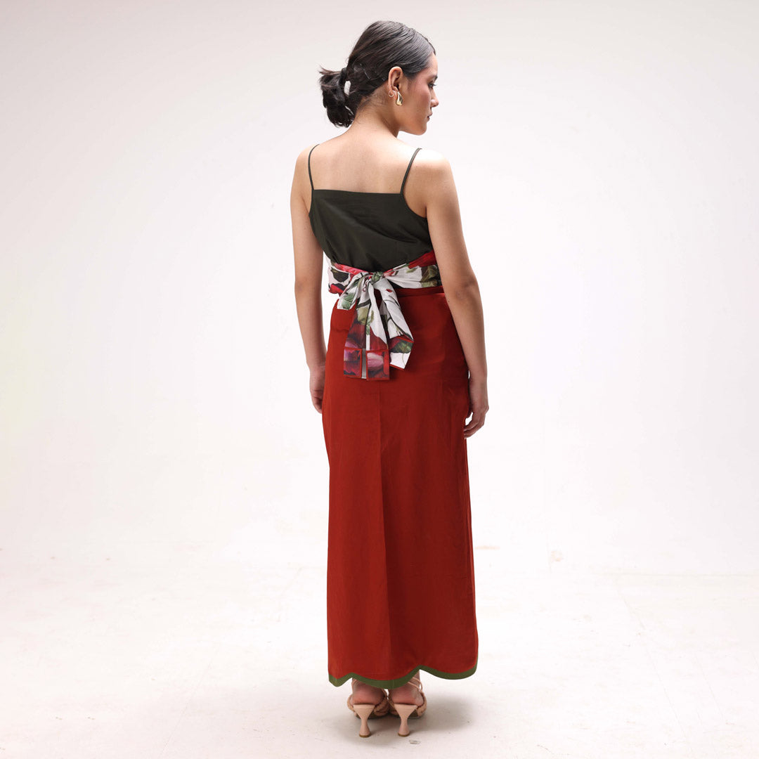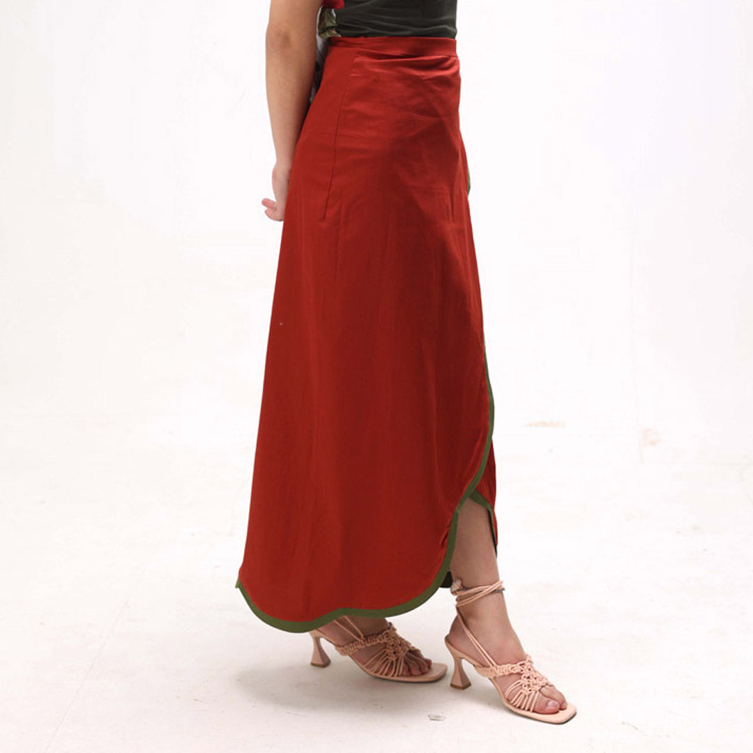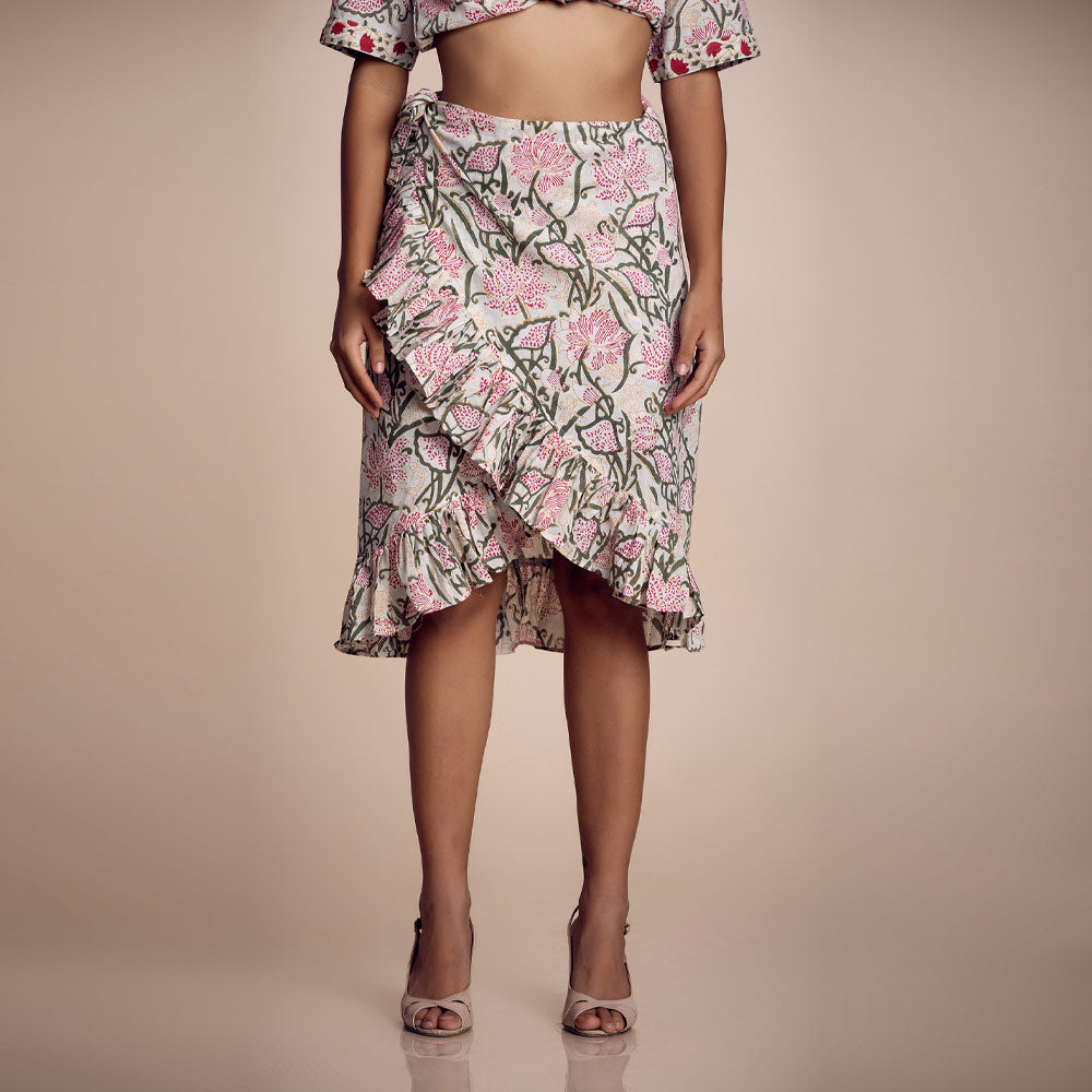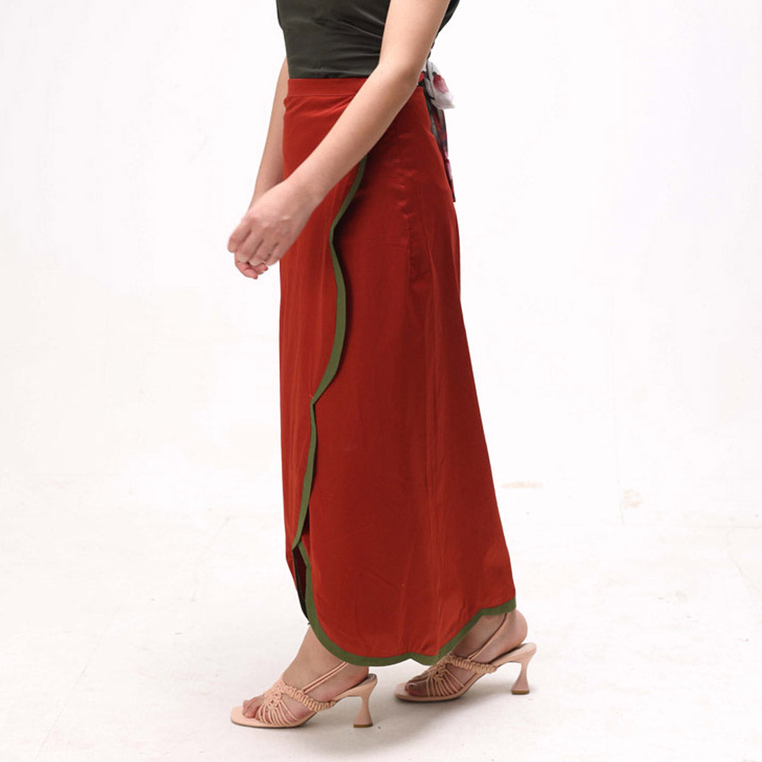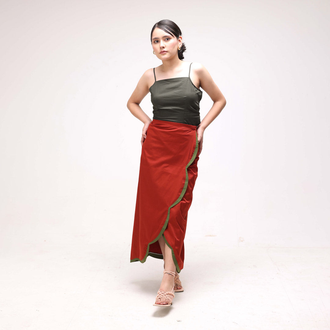 Garden Delight: Red-Green Floral Printed Cotton Skirt for Stylish Flair