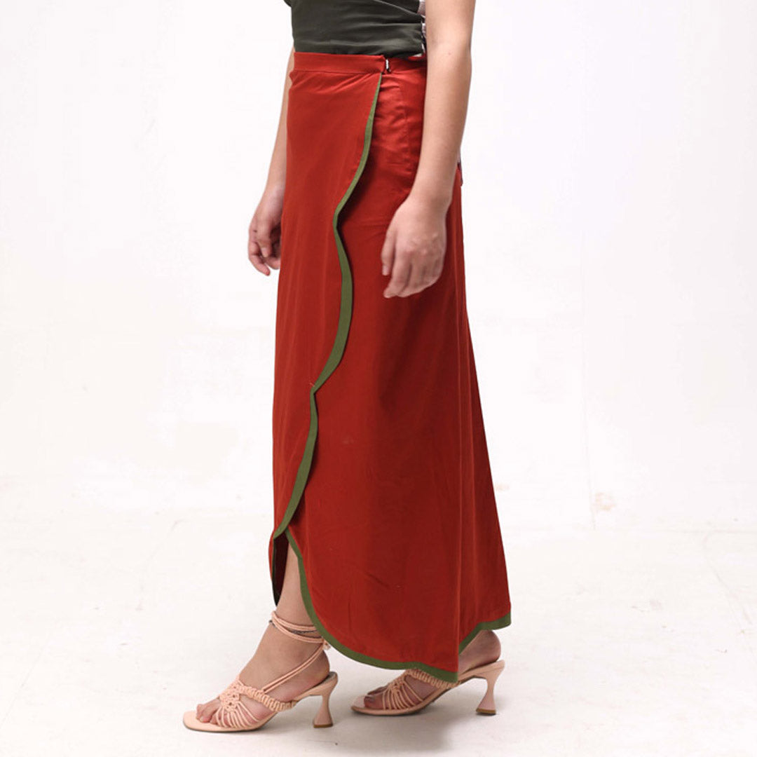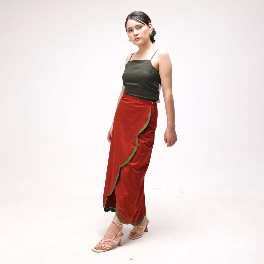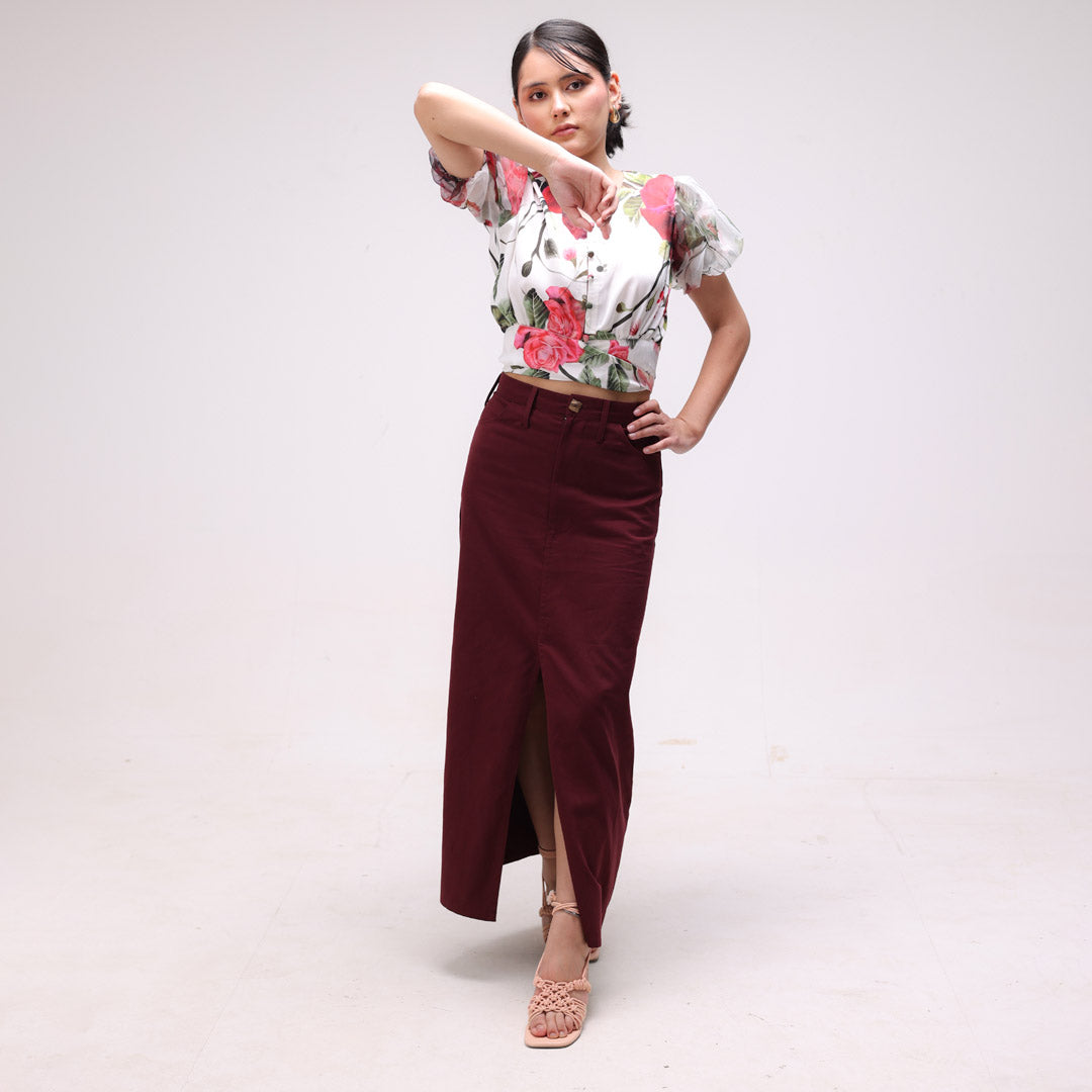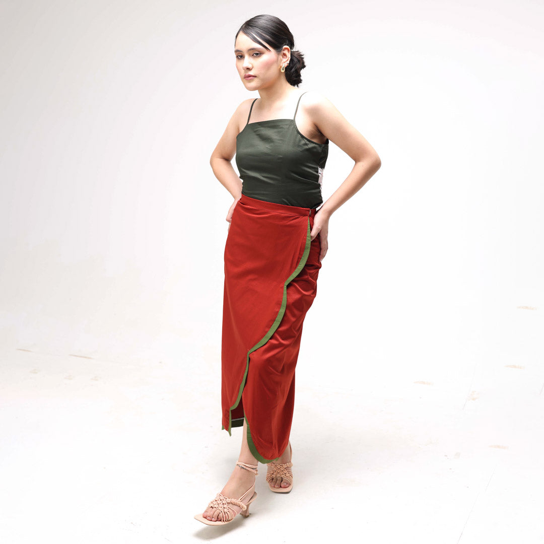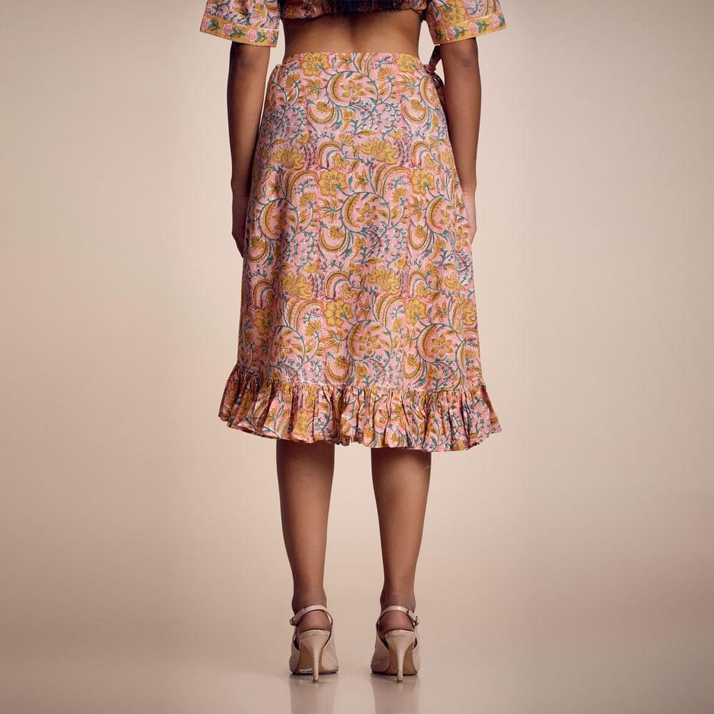 Garden Delight: Red-Green Floral Printed Cotton Skirt for Stylish Flair