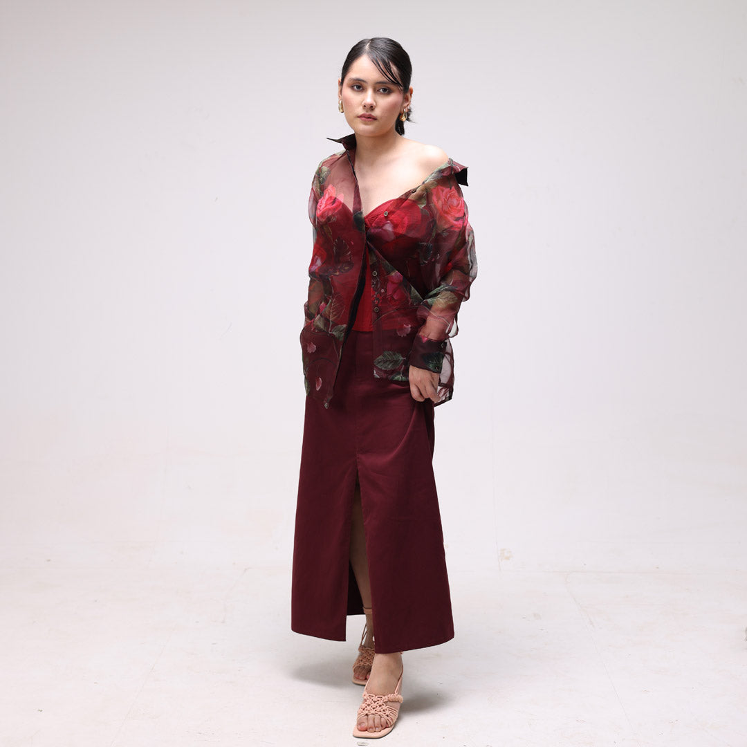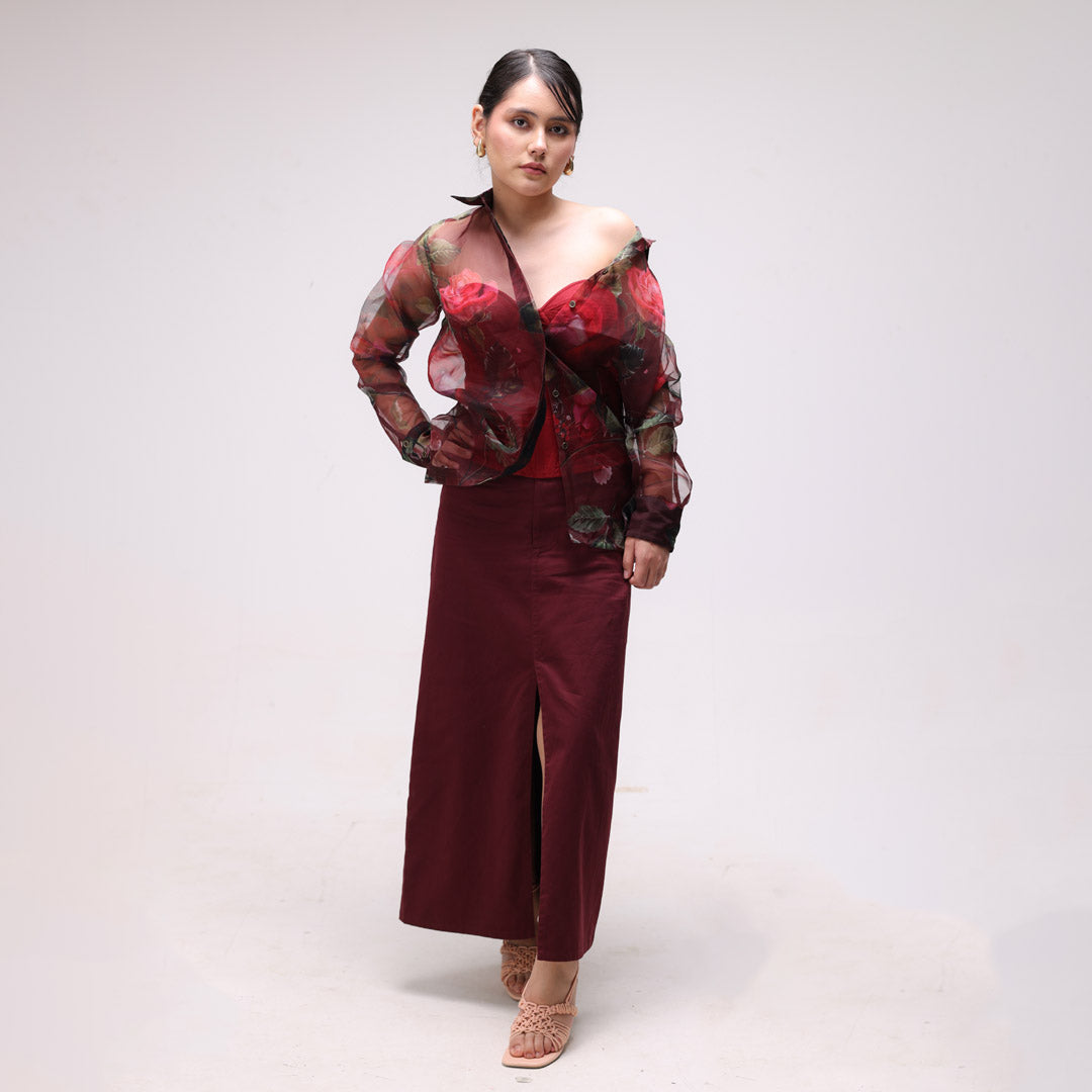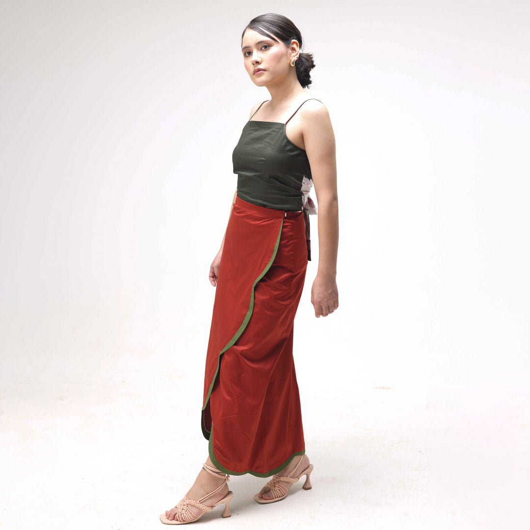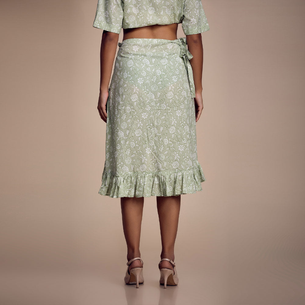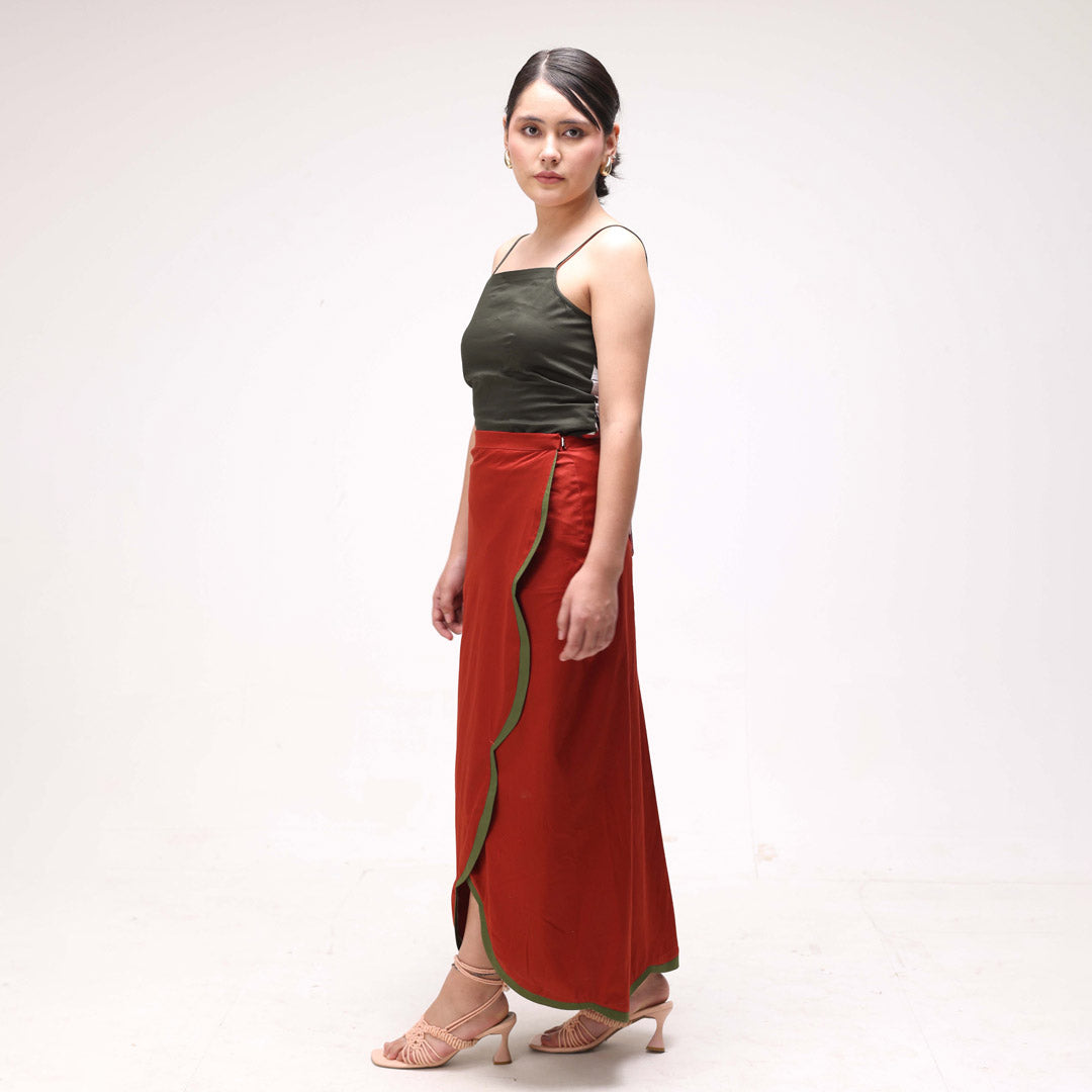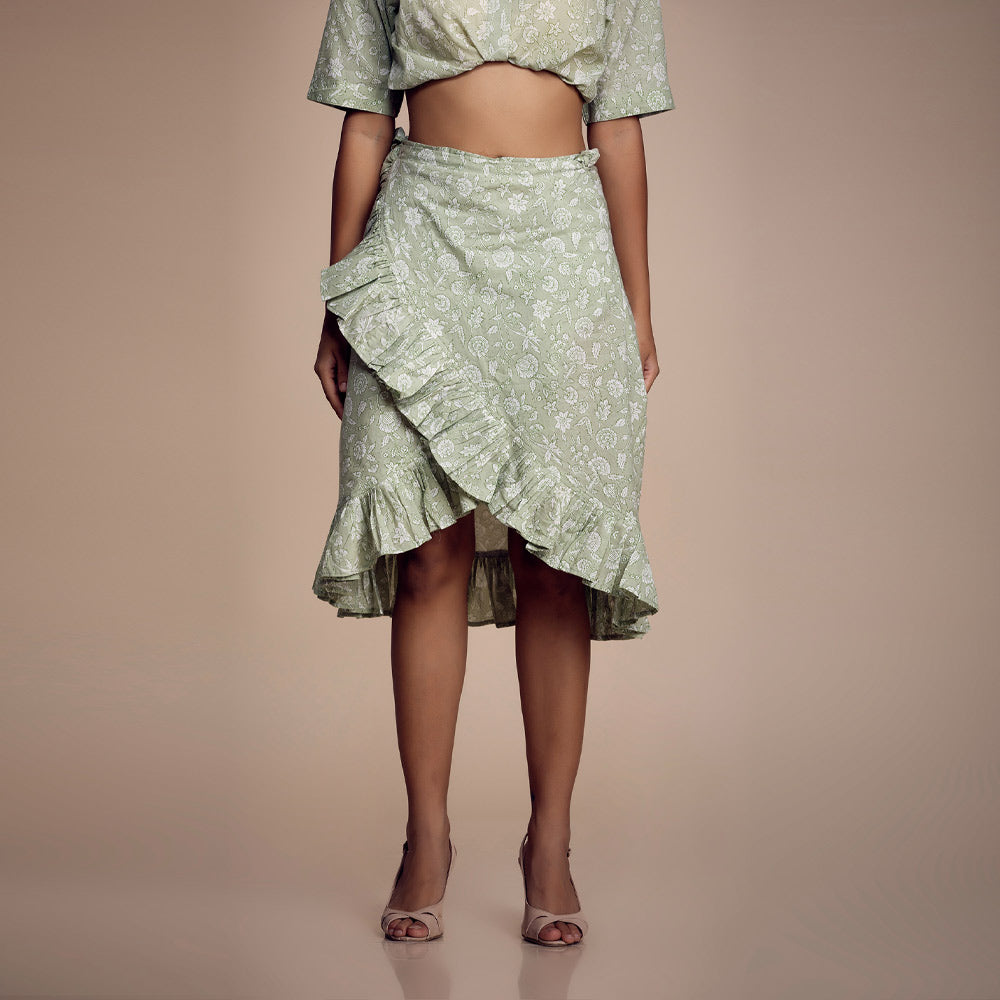 Garden Delight: Red-Green Floral Printed Cotton Skirt for Stylish Flair