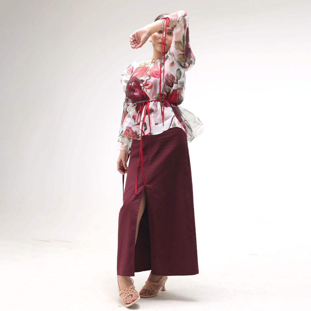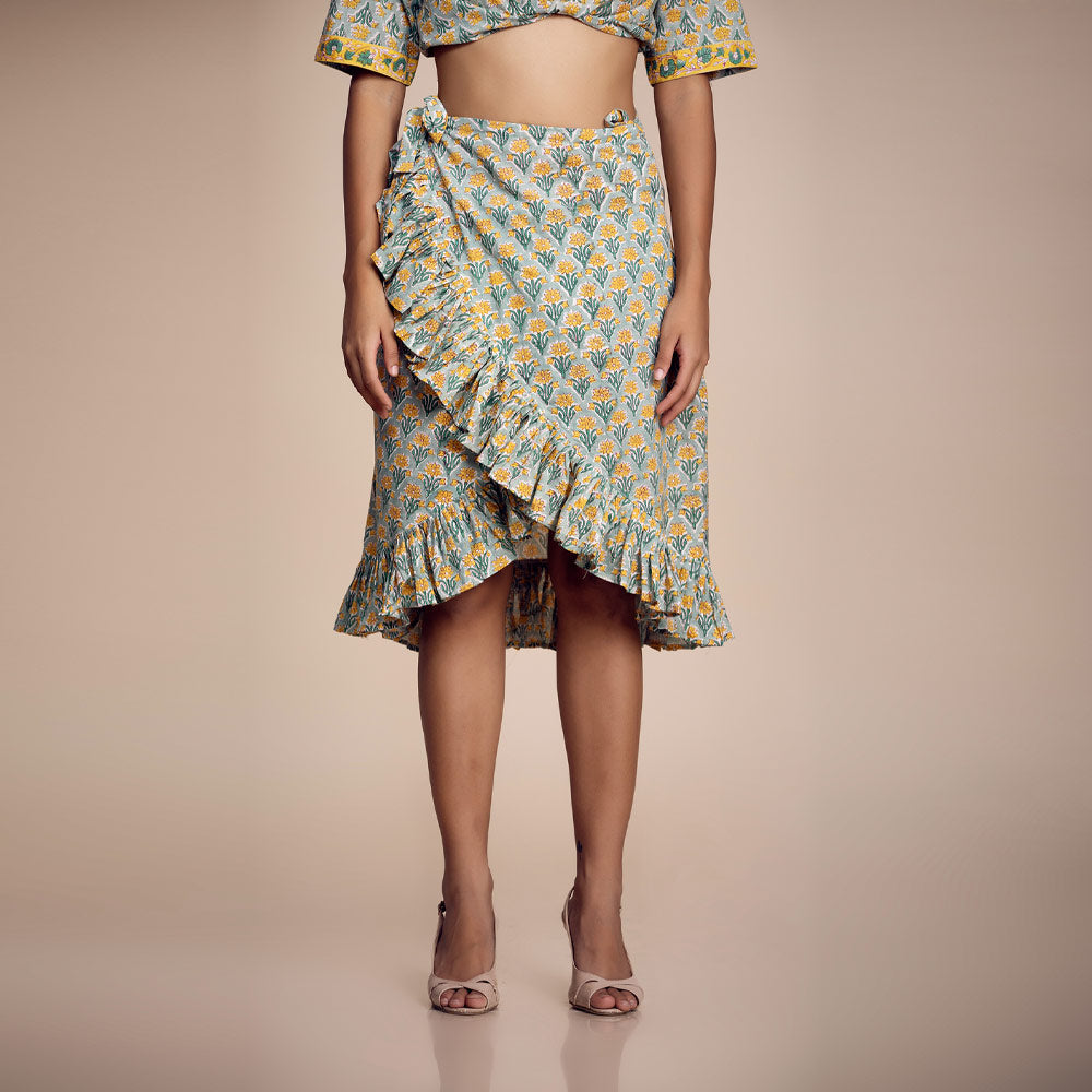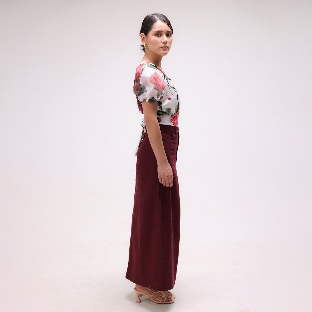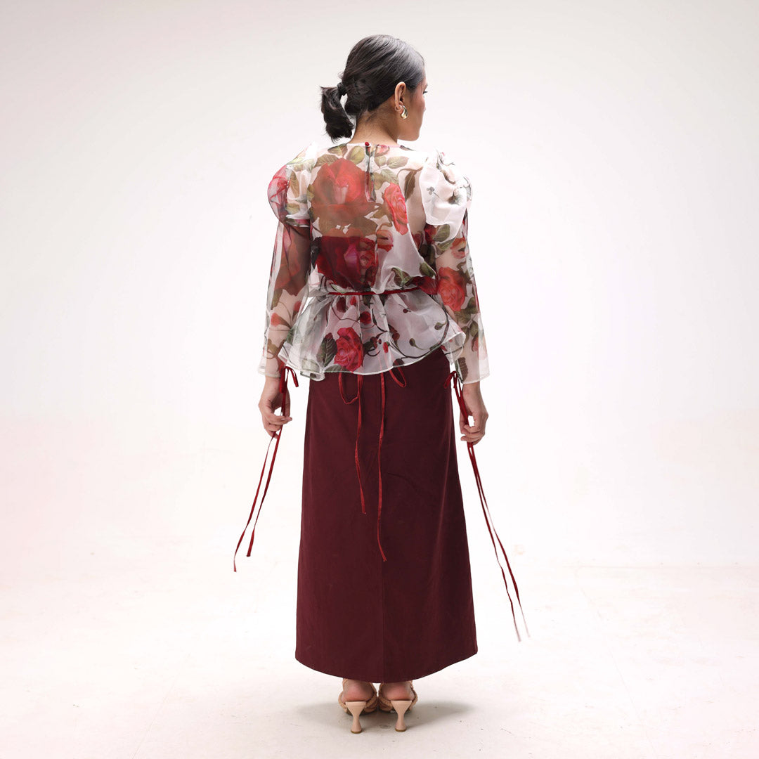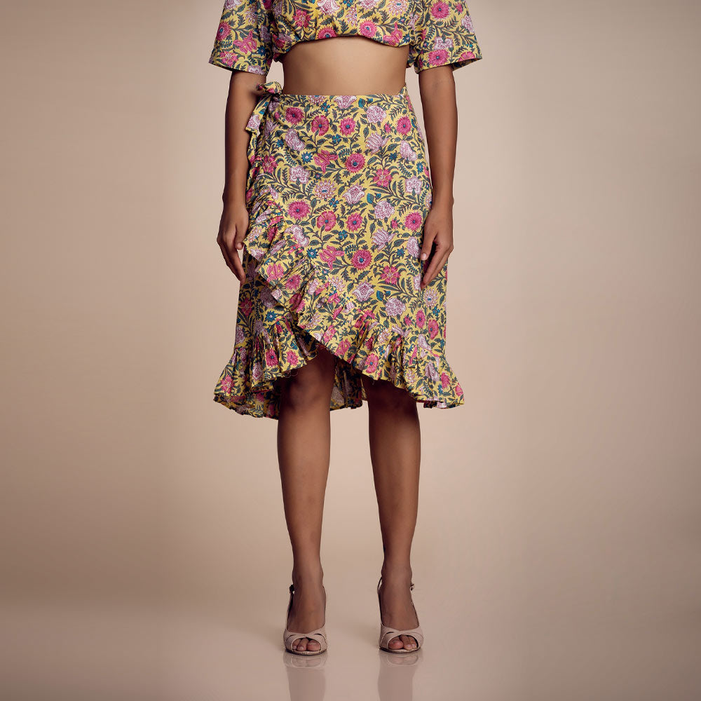 Garden Delight: Red-Green Floral Printed Cotton Skirt for Stylish Flair