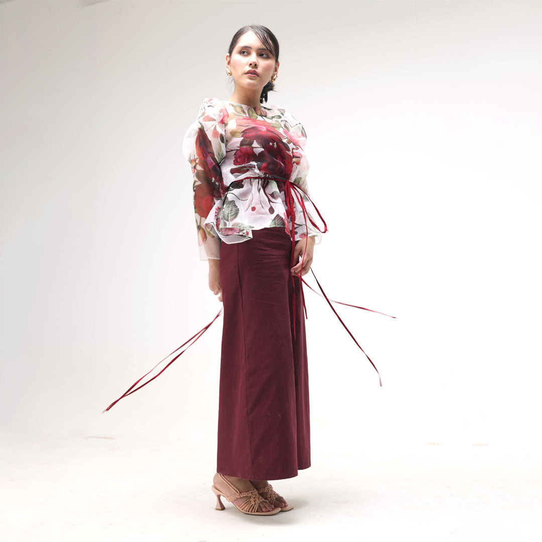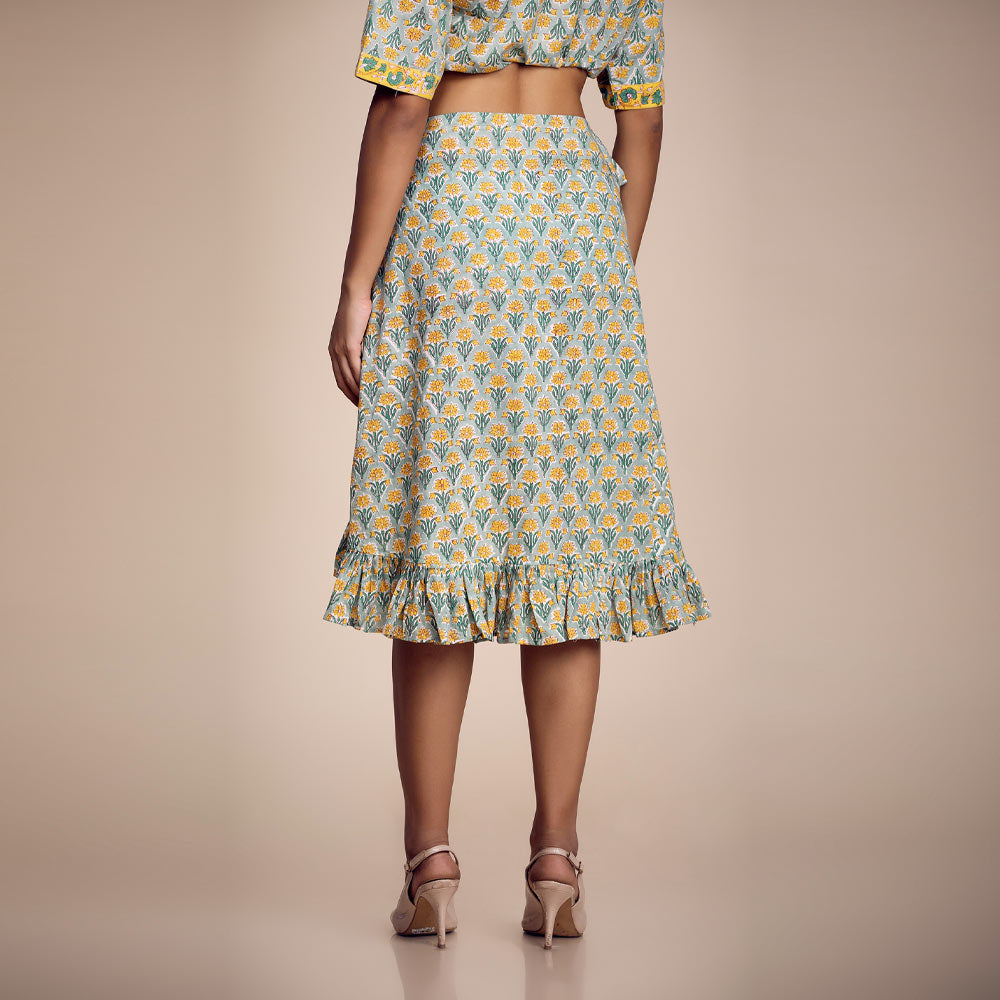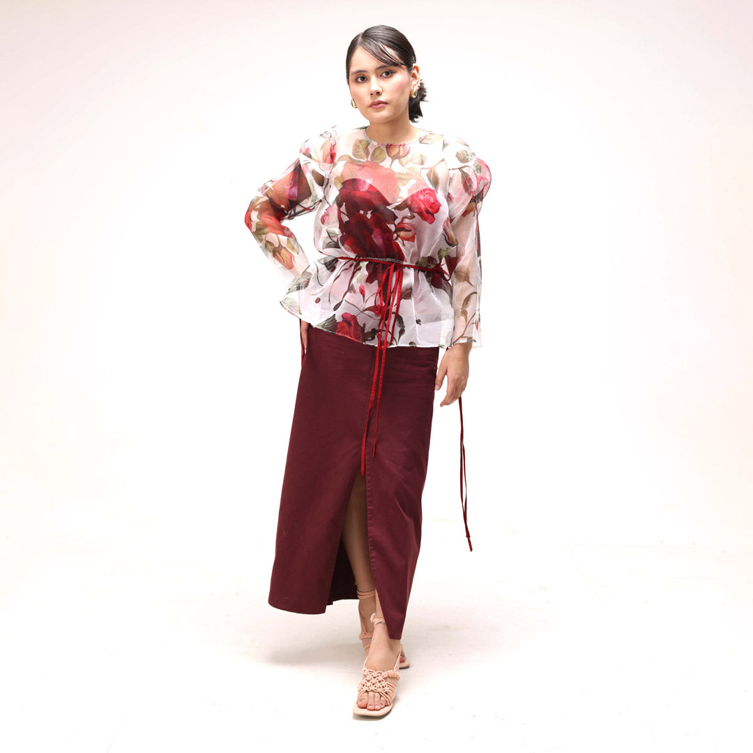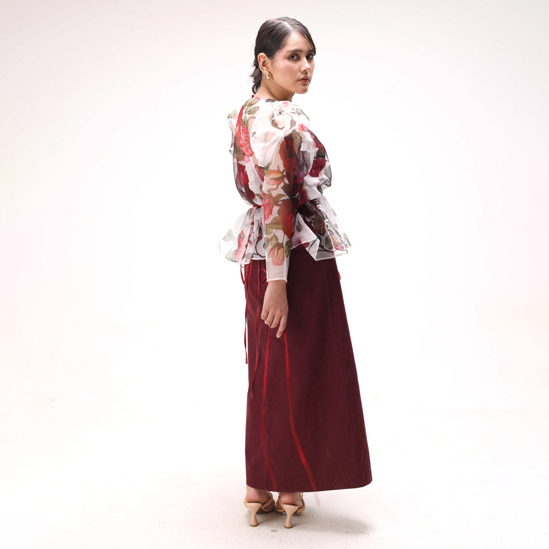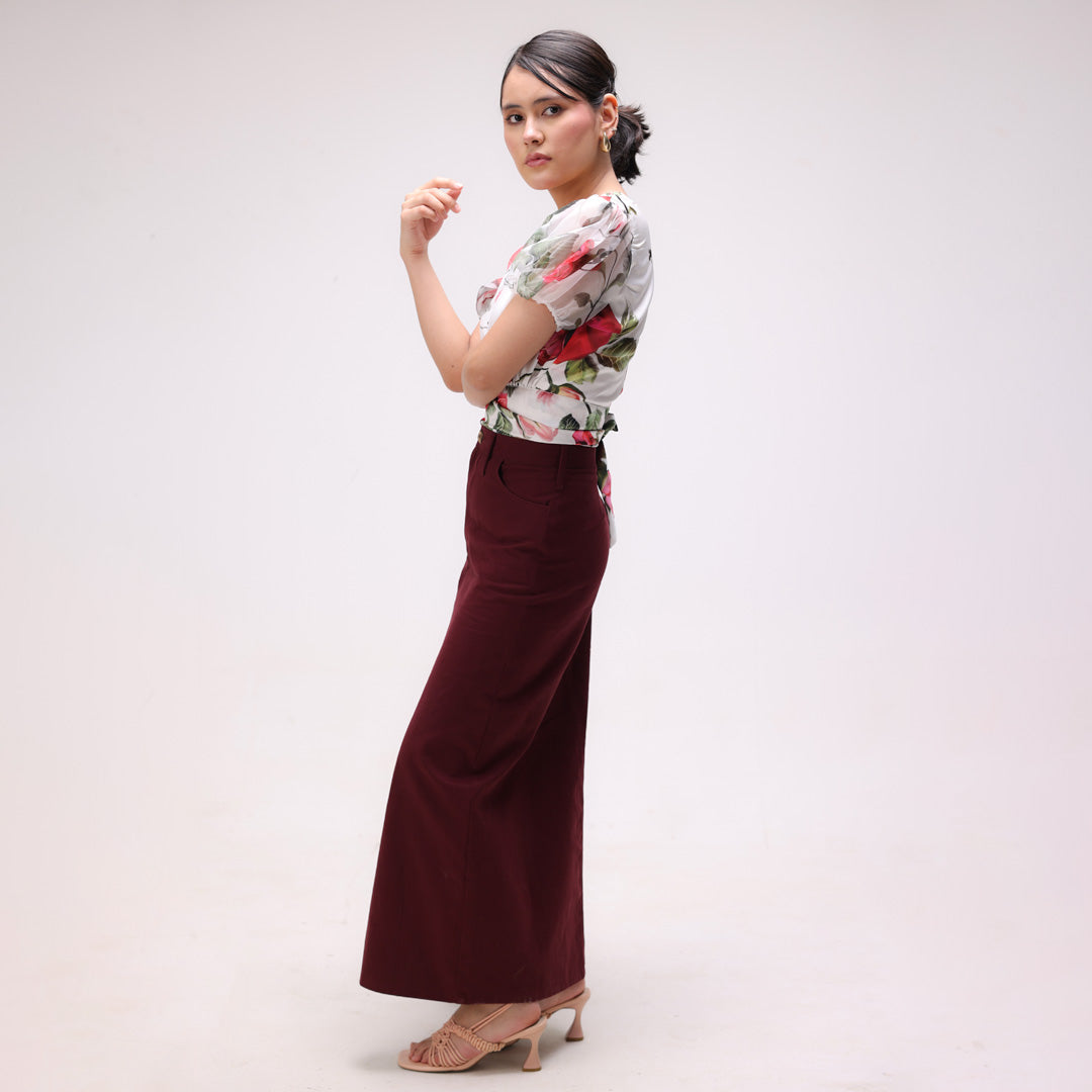 Garden Delight: Red-Green Floral Printed Cotton Skirt for Stylish Flair