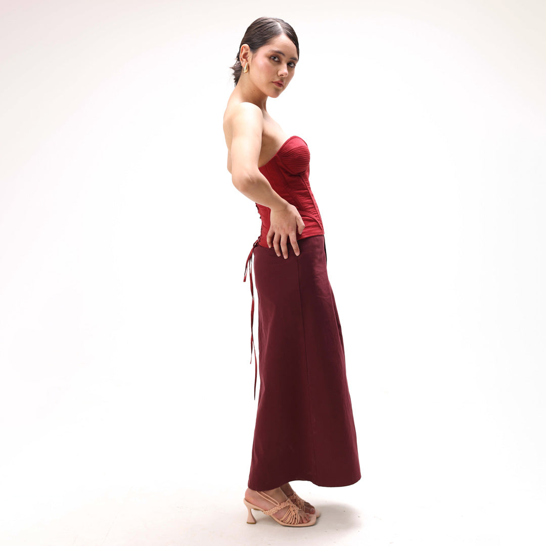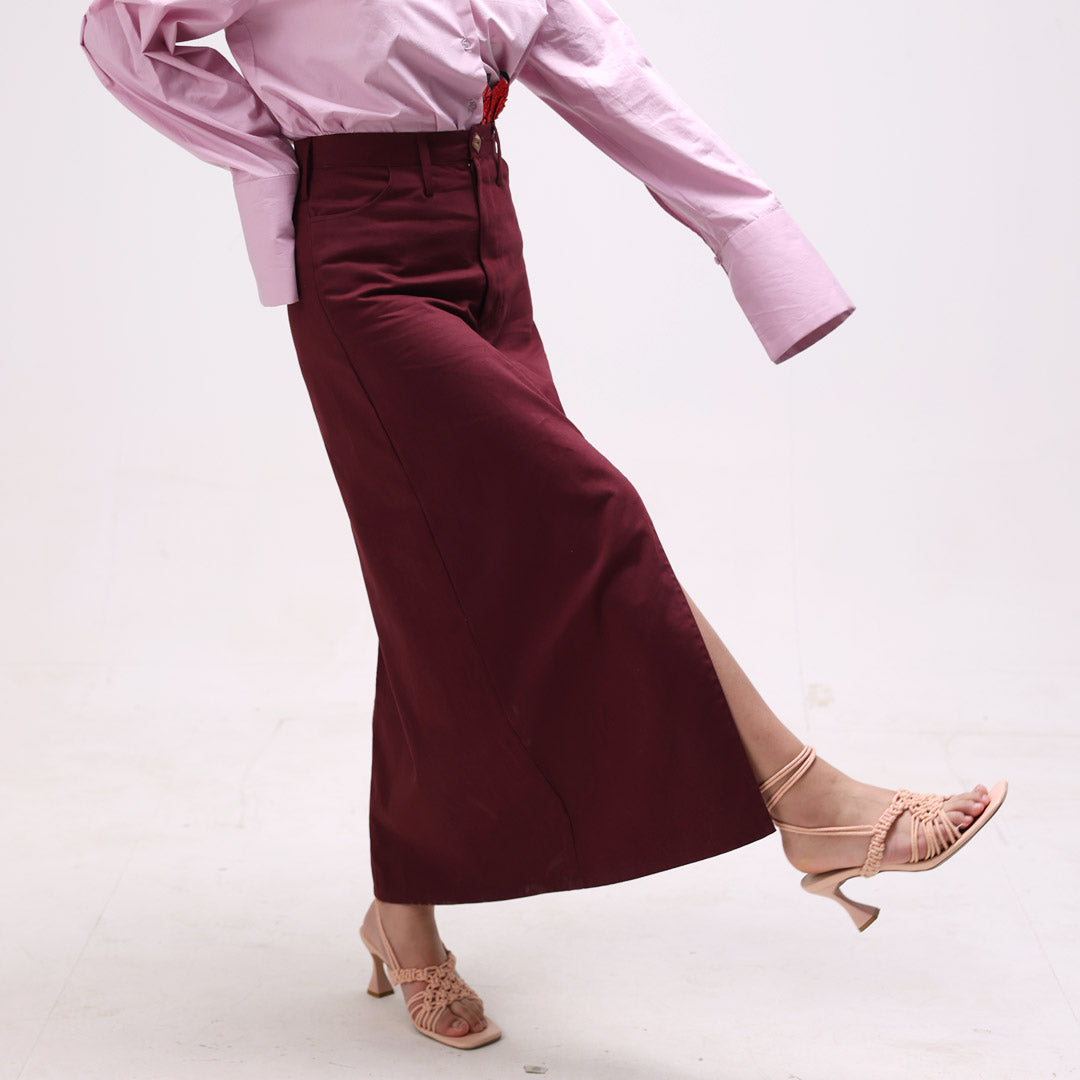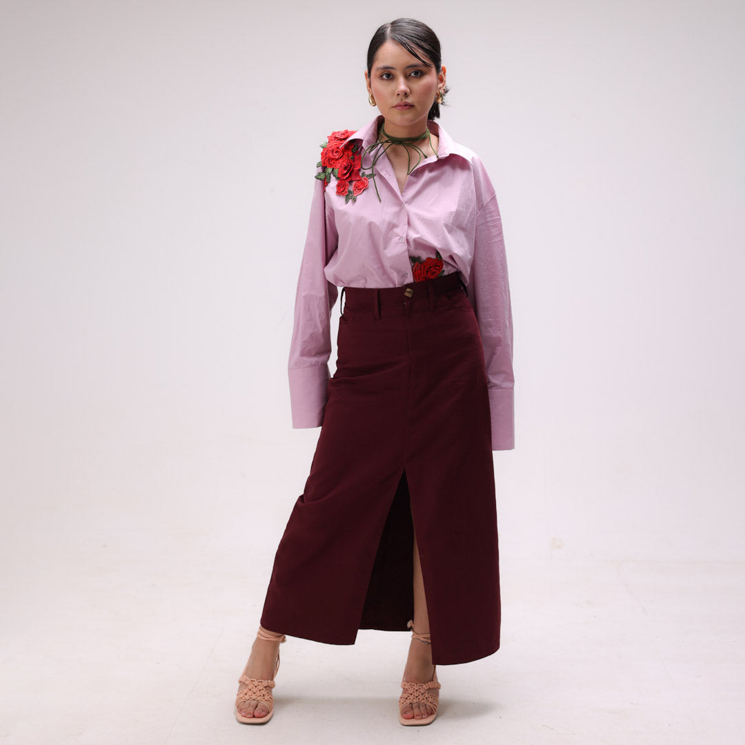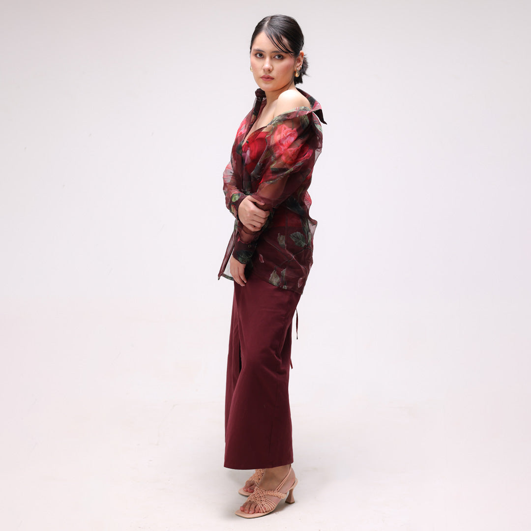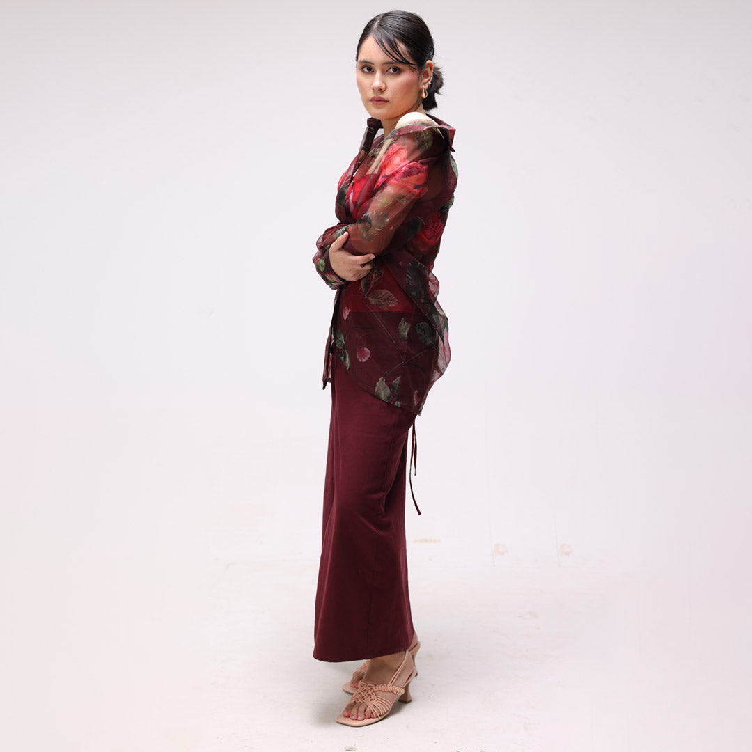 Garden Delight: Red-Green Floral Printed Cotton Skirt for Stylish Flair
