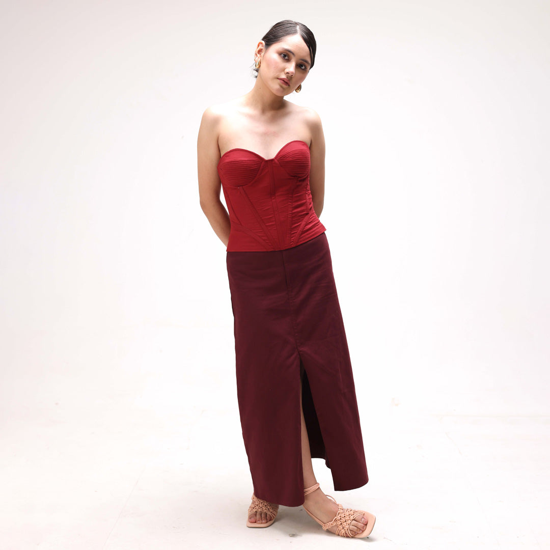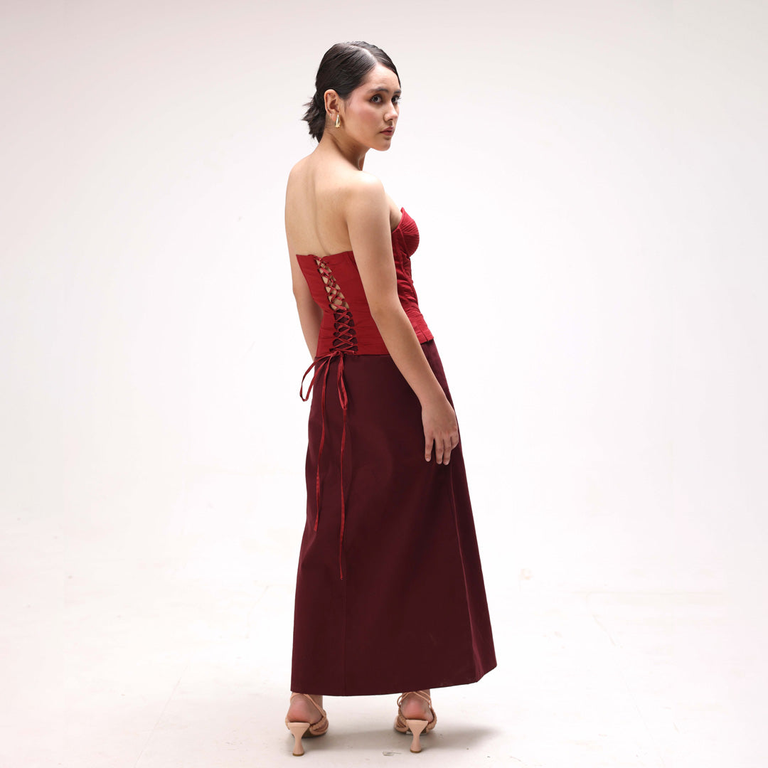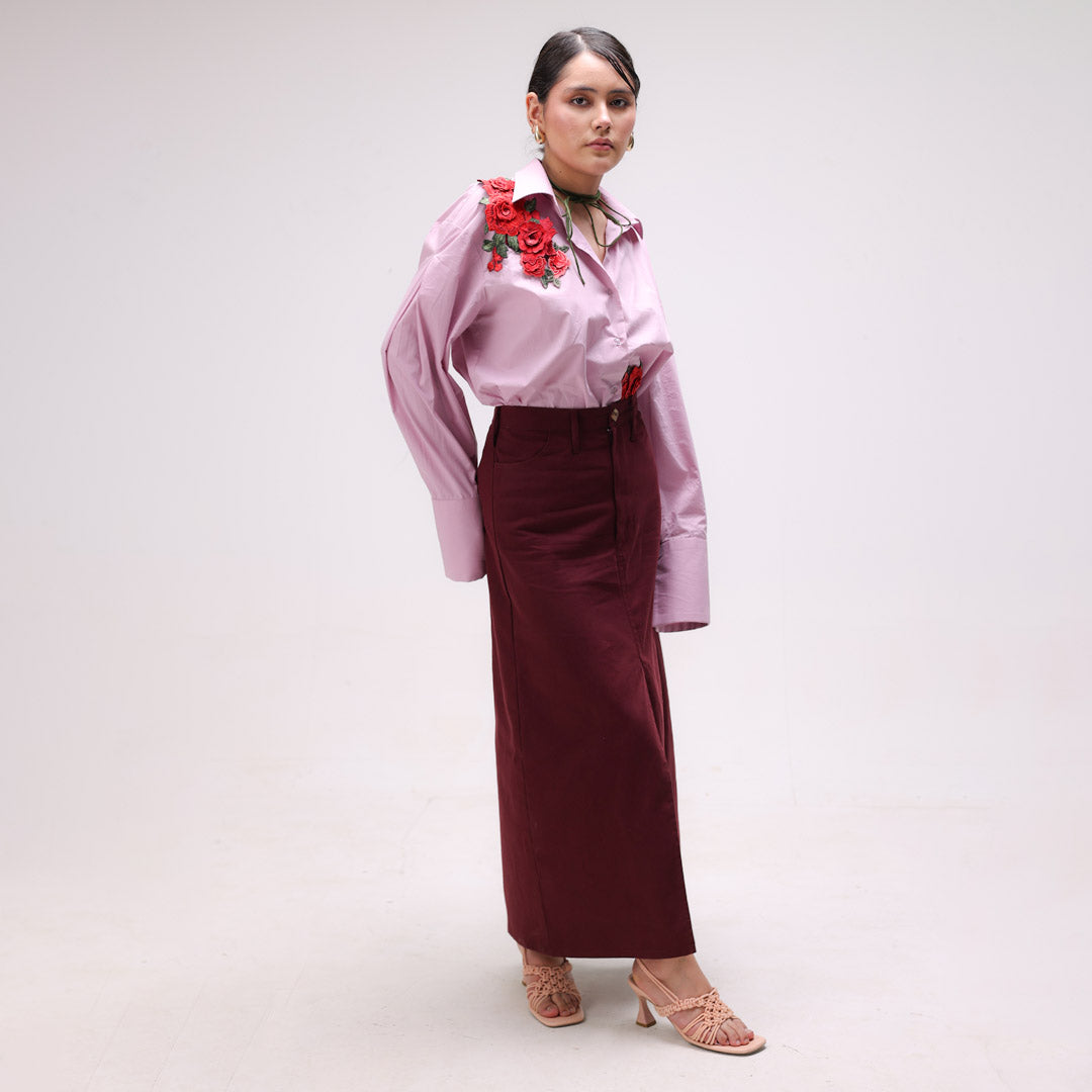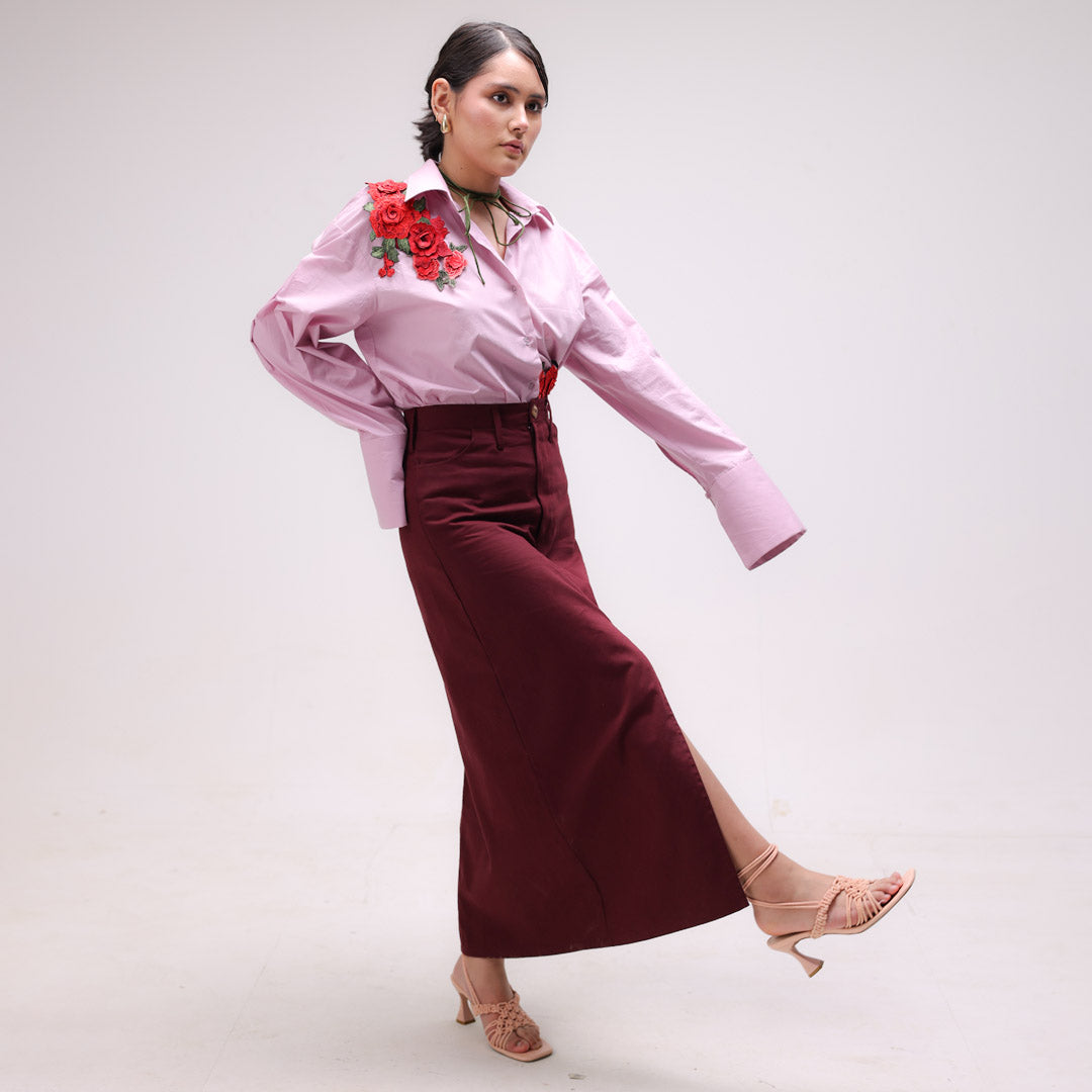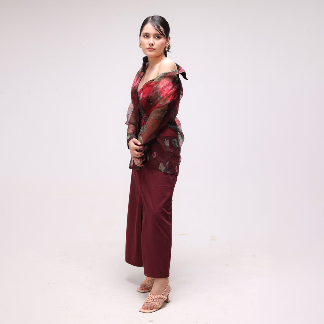 Garden Delight: Red-Green Floral Printed Cotton Skirt for Stylish Flair