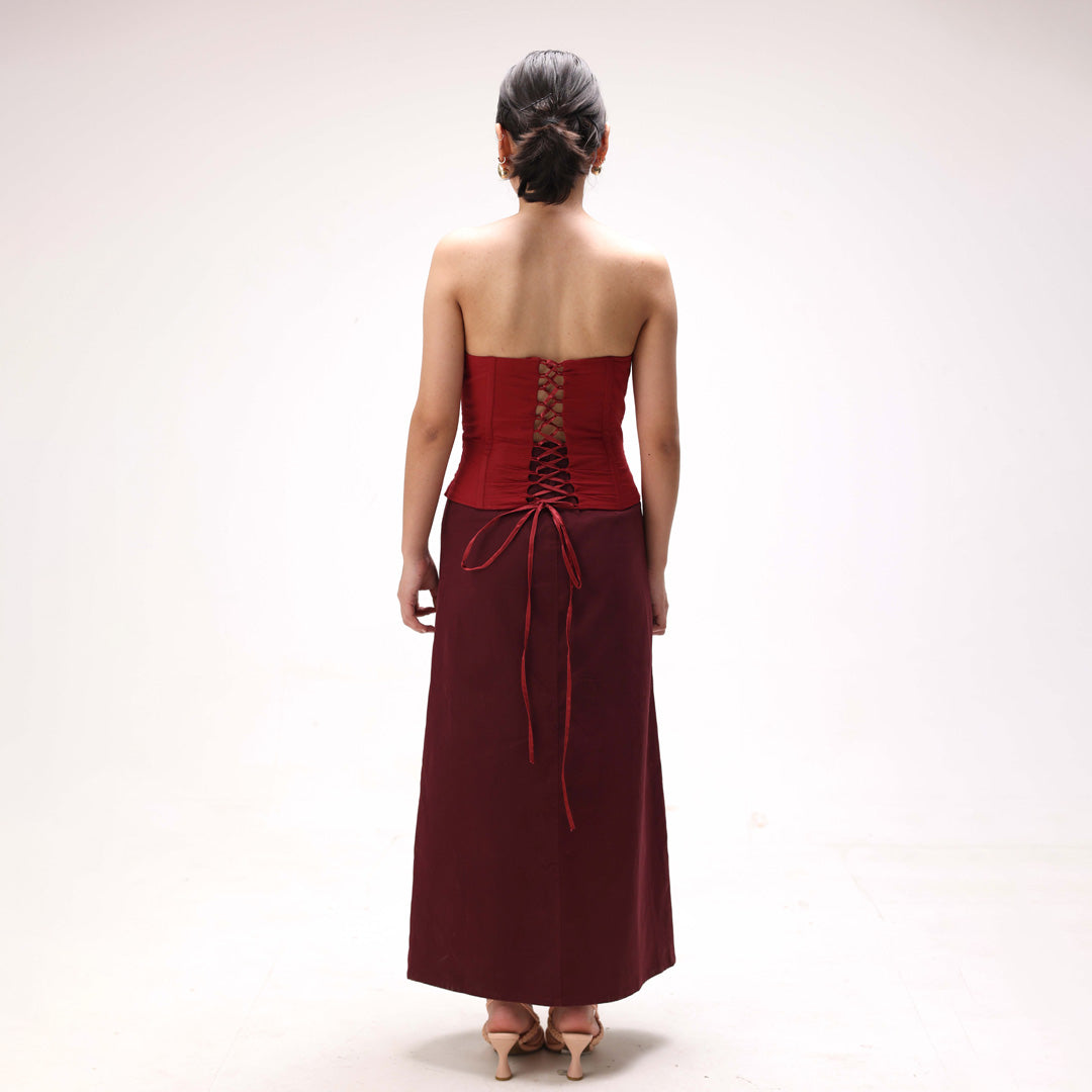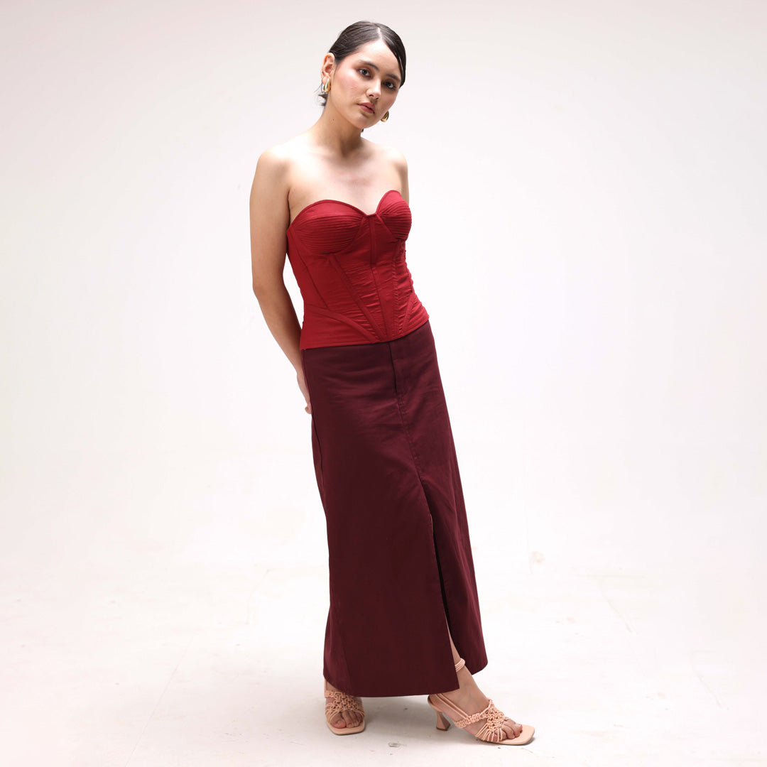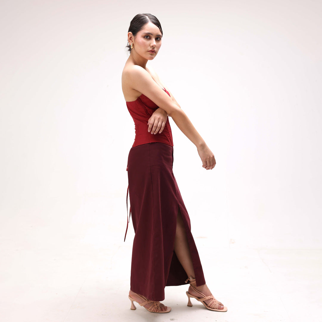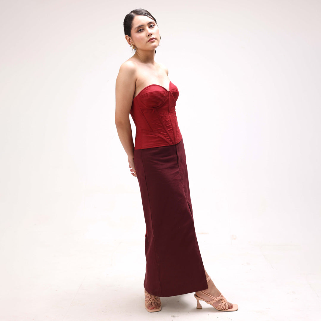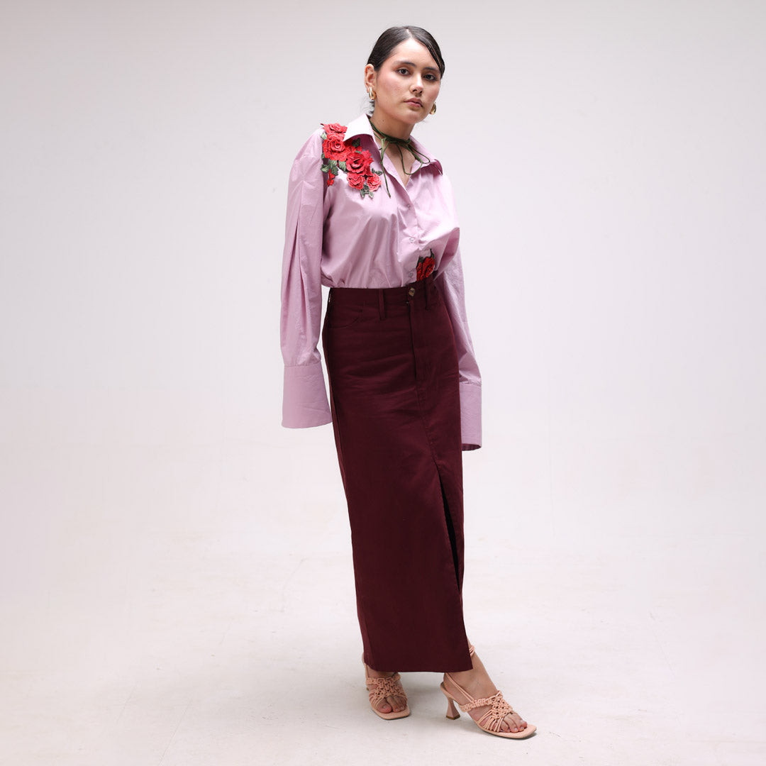 Garden Delight: Red-Green Floral Printed Cotton Skirt for Stylish Flair