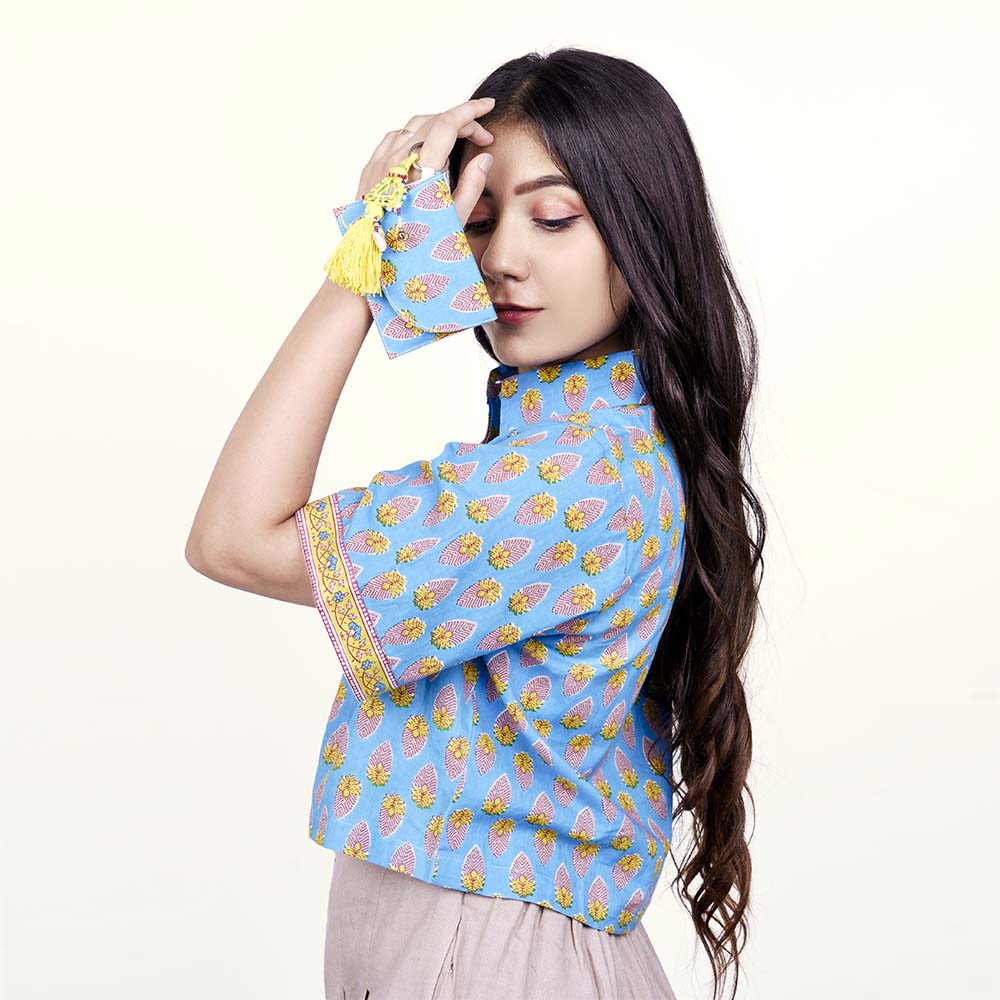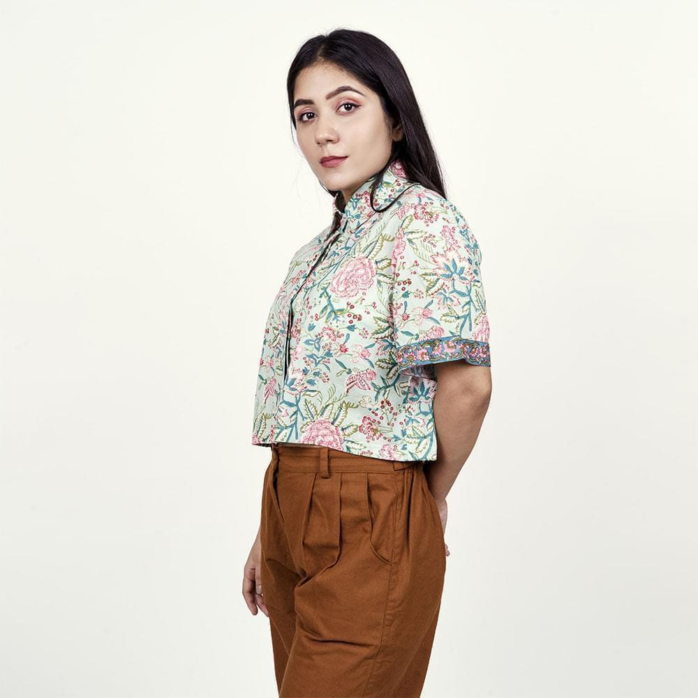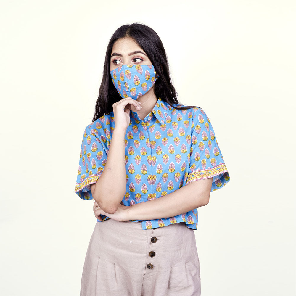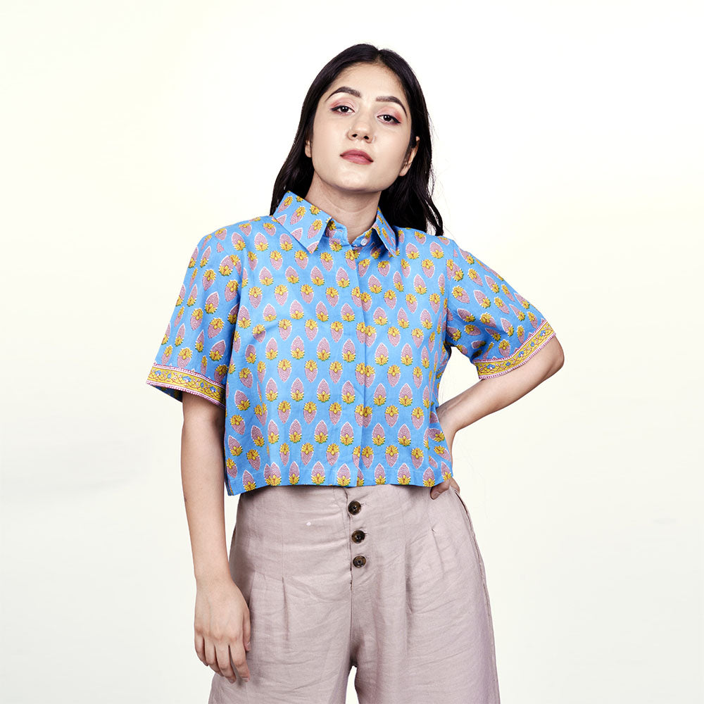 Cloud Blue Cotton Crop Shirt