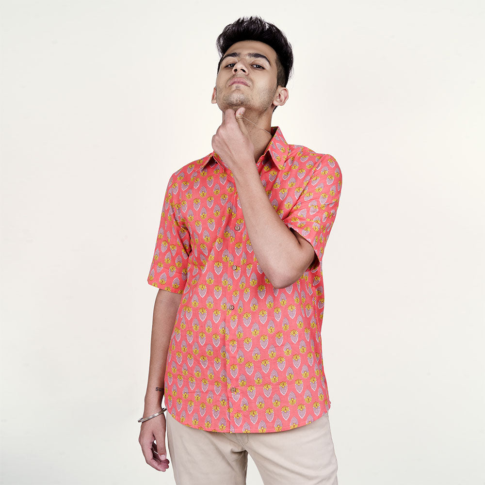 Radiant Blaze: Neon Orange Cotton Shirt