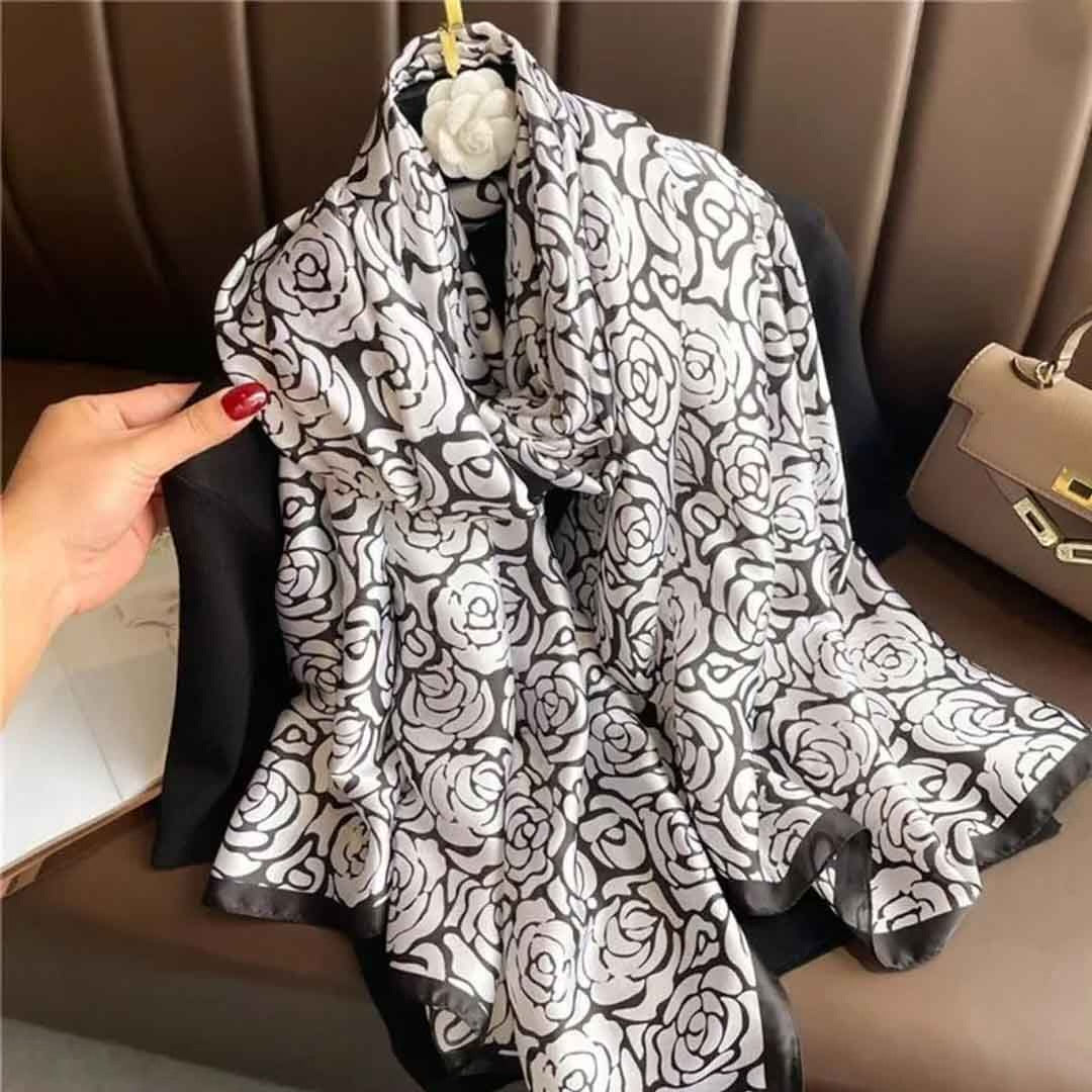 Spice up your look with our Ballet of Roses Satin Stole. This sleek and stylish stole features a stunning black and white rose print that will add a touch of elegance to any outfit. Whether you wear it to a formal event or a casual outing, this monochrome stole will surely make you stand out (in a good way)!