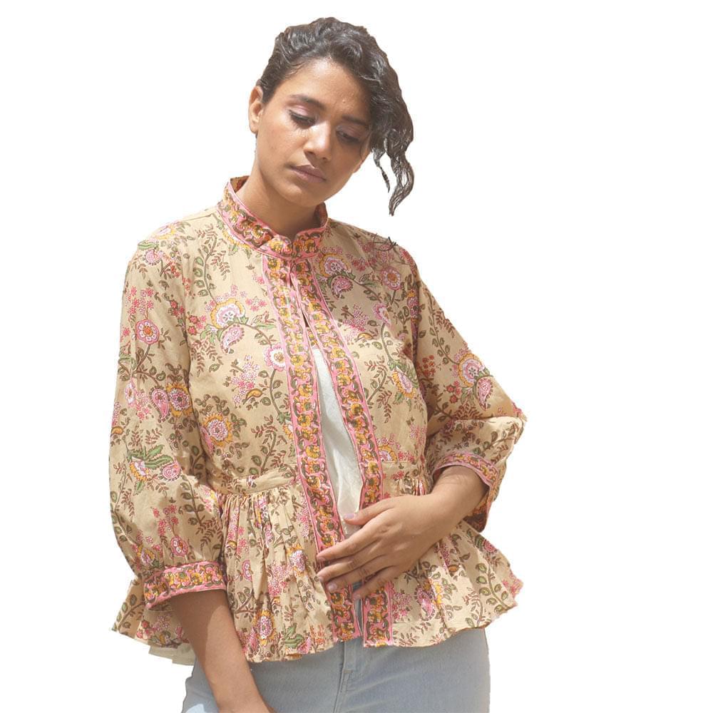 Neutral Chic Set: Beige Cotton Jacket and Double Layered Off-White Tube Top Duo