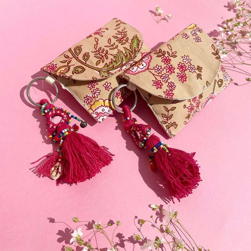 Note- There might be a slight variation in the shade of the Tassel or Pouch and the image shown on the screen, due to the hand block/screen print and photography effects.