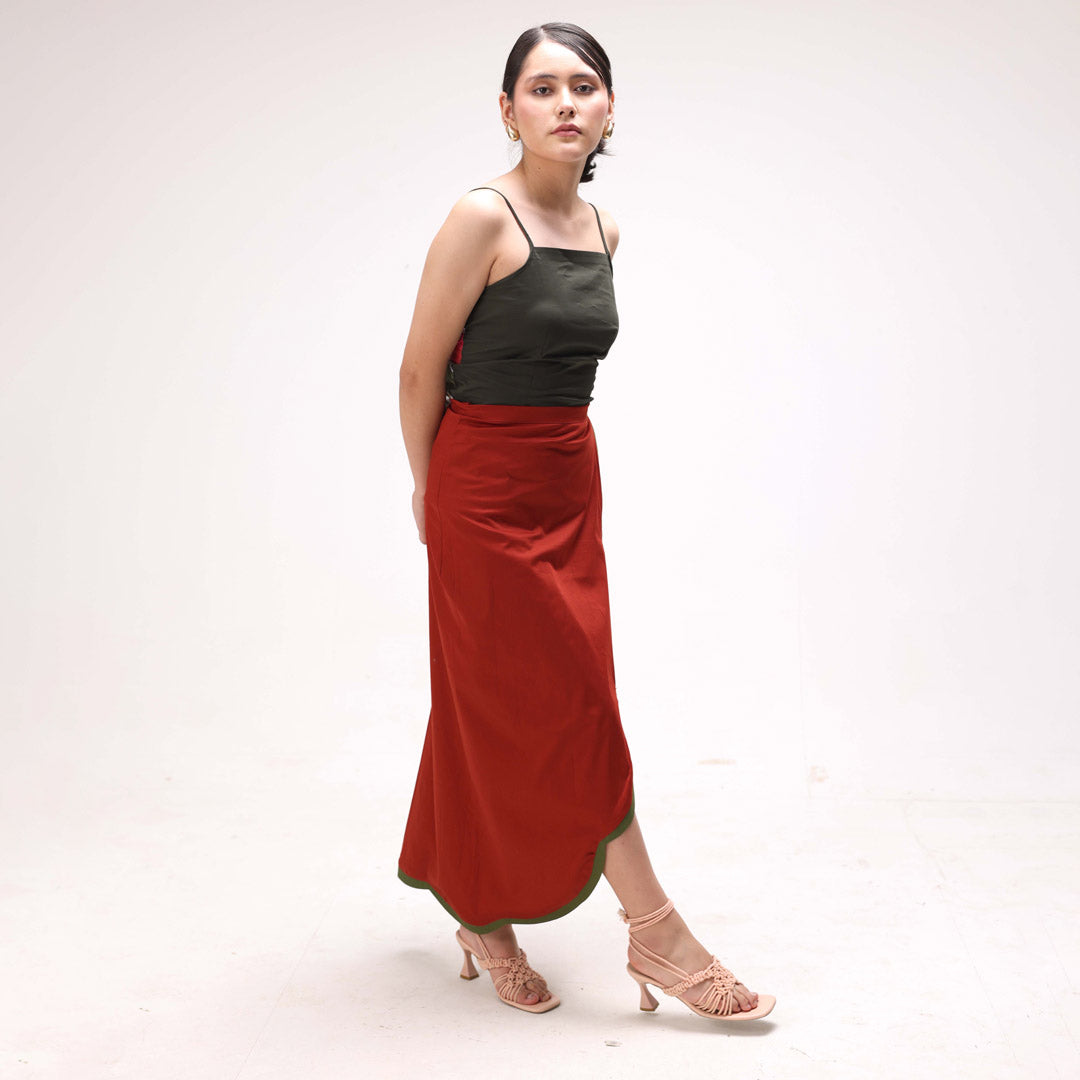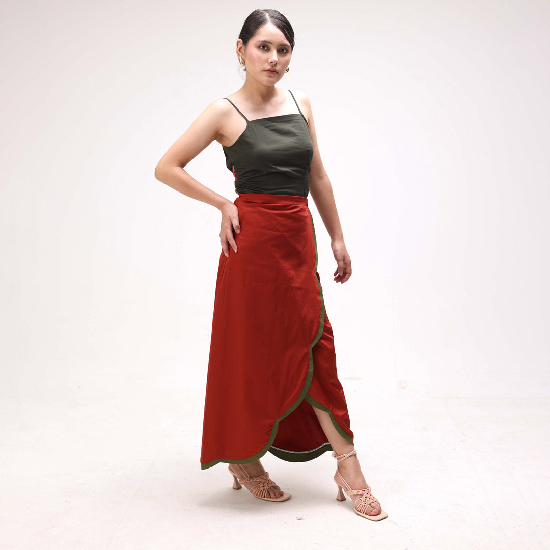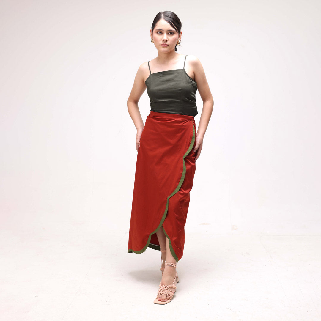 Introducing the Floriana Co-ord set, featuring a sophisticated olive top with knot and floral details. Paired with a scallop skirt, this chic and classy cotton set is perfect for those seeking an elegant and tasteful look. Elevate your wardrobe with Floriana.