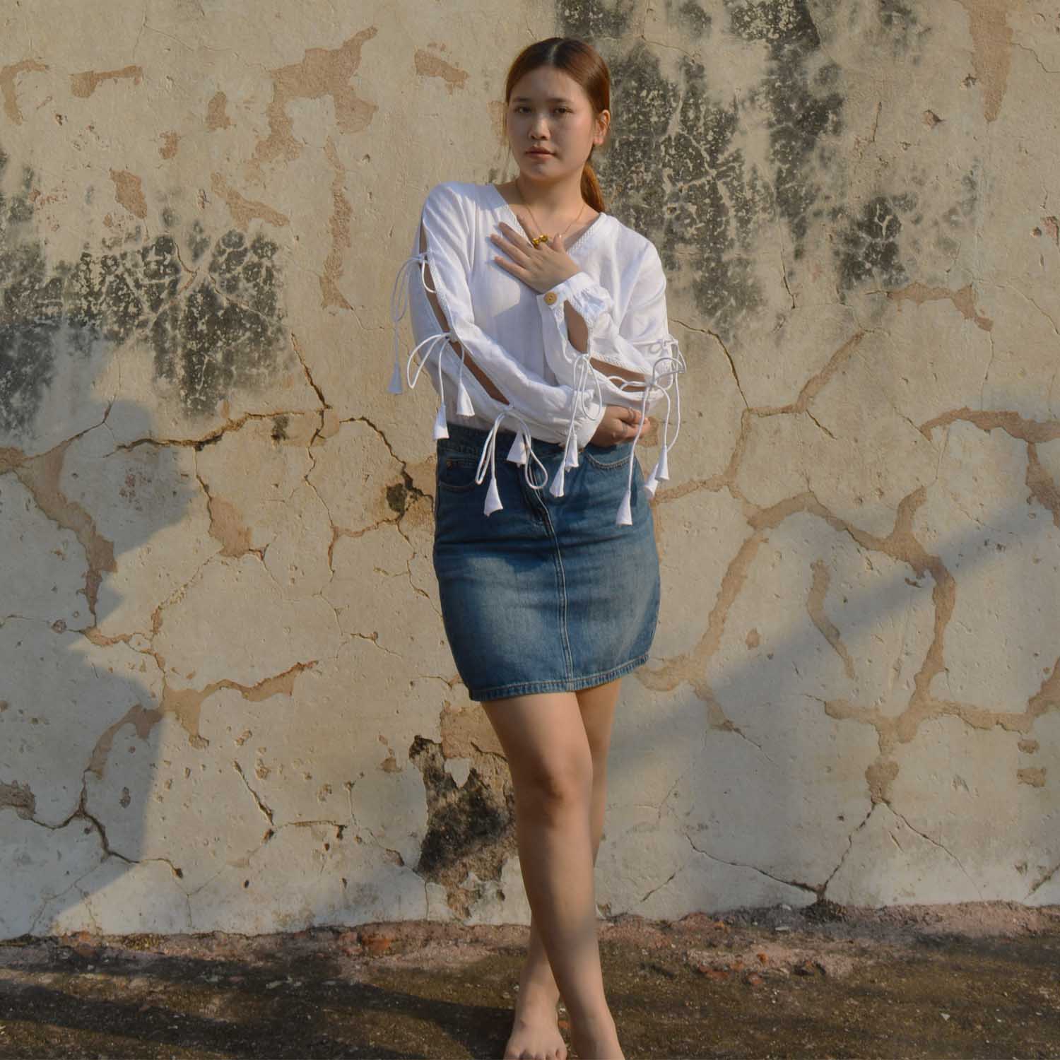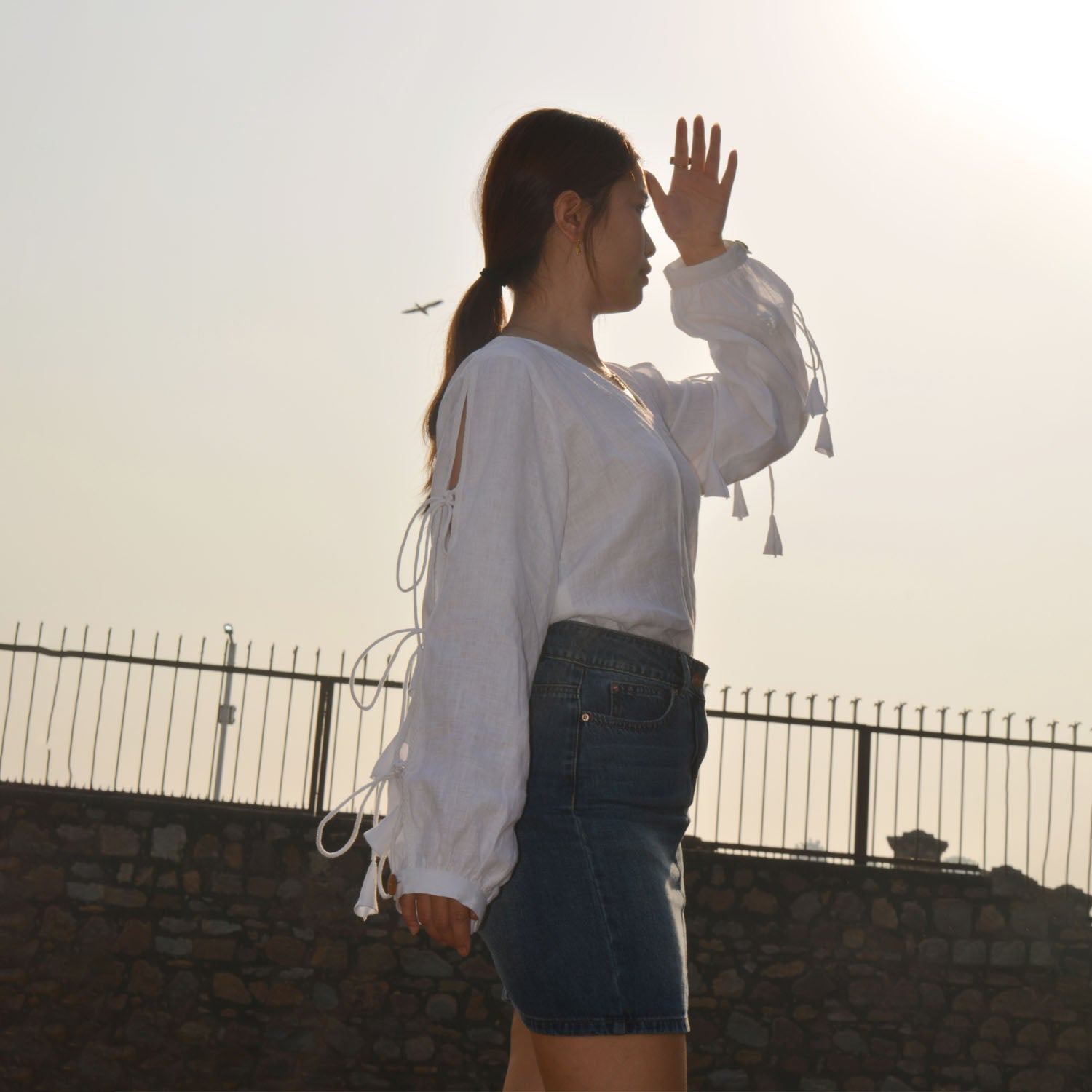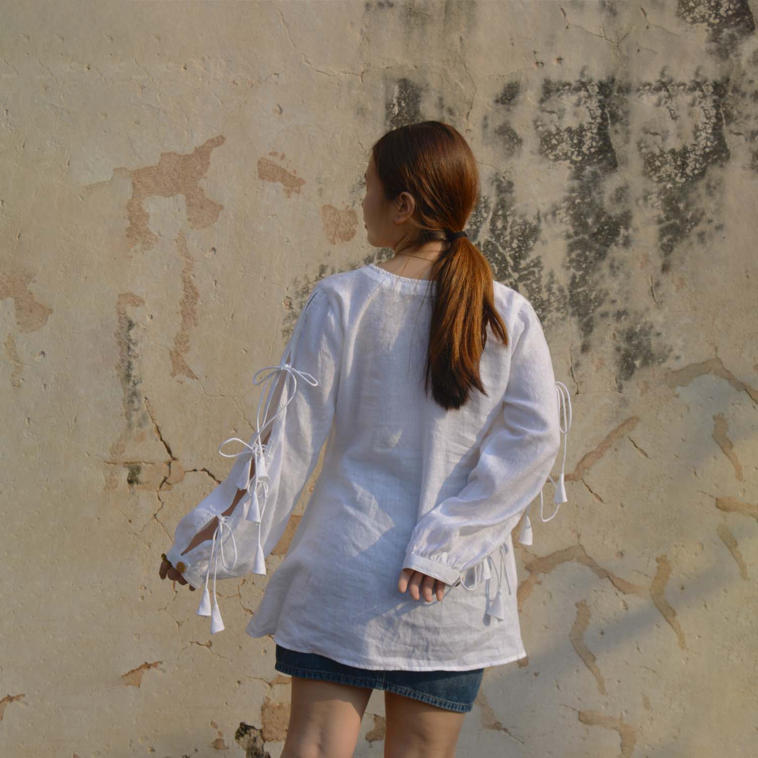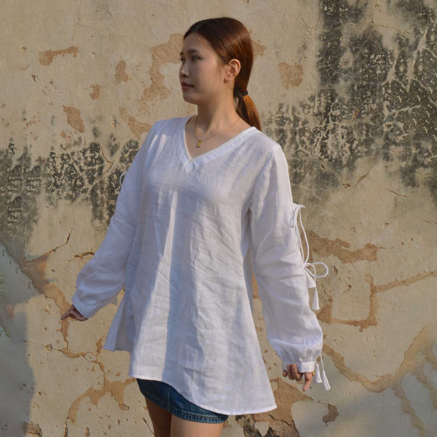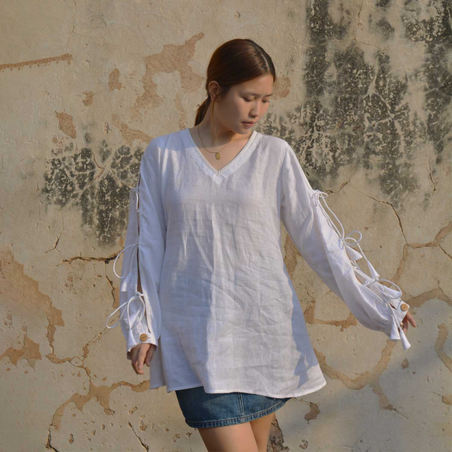 Pure Elegance: White Linen Top with Bowtie Sleeves