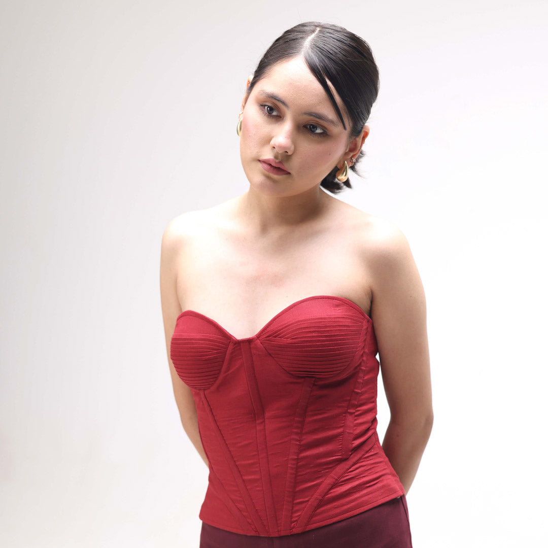 Sculpt your figure with the luxurious Scarlet Blossom Corset. Crafted with intricate details, a back ribbon for a flawless fit, and adjustable design, this maroon corcet will give you the perfect shape and precise support. Elevate your style and confidence with Bloomlet.