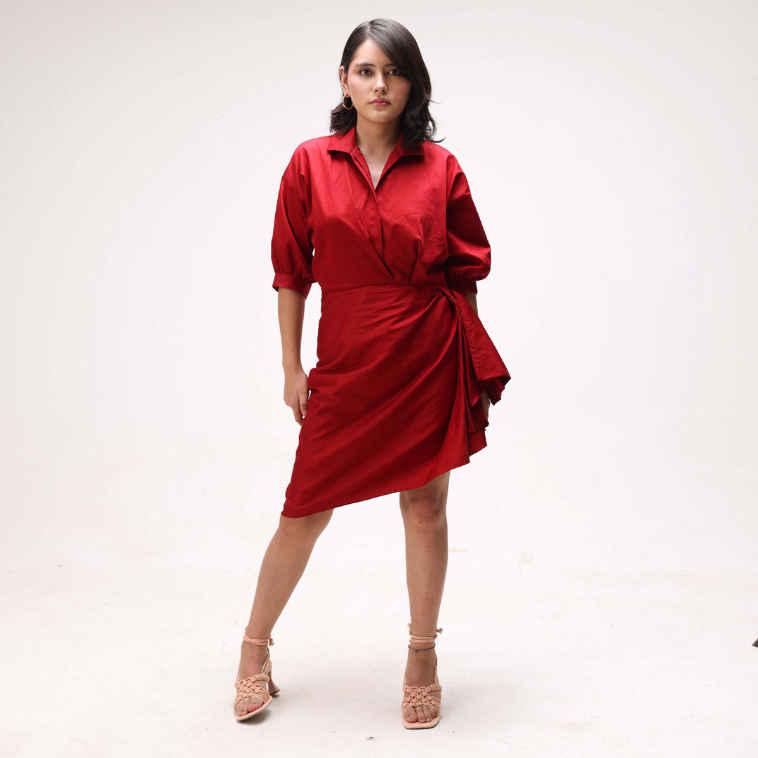 Transform into the center of attention with the Scarlet Grace Asymmetrical Cotton Dress. This elegant and classy rose red dress will make you stand out in any crowd. Get ready to turn heads and feel confident in this stunning red dress.
