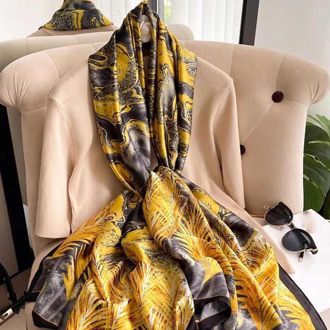 Wrap yourself in sunny elegance with the Sunshine Sanctuary Satin Stole. Made of luxurious satin and adorned with a unique print, this stole adds a touch of class to any outfit. Its vibrant yellow hue will brighten up any day. (Sunshine never looked so chic.)