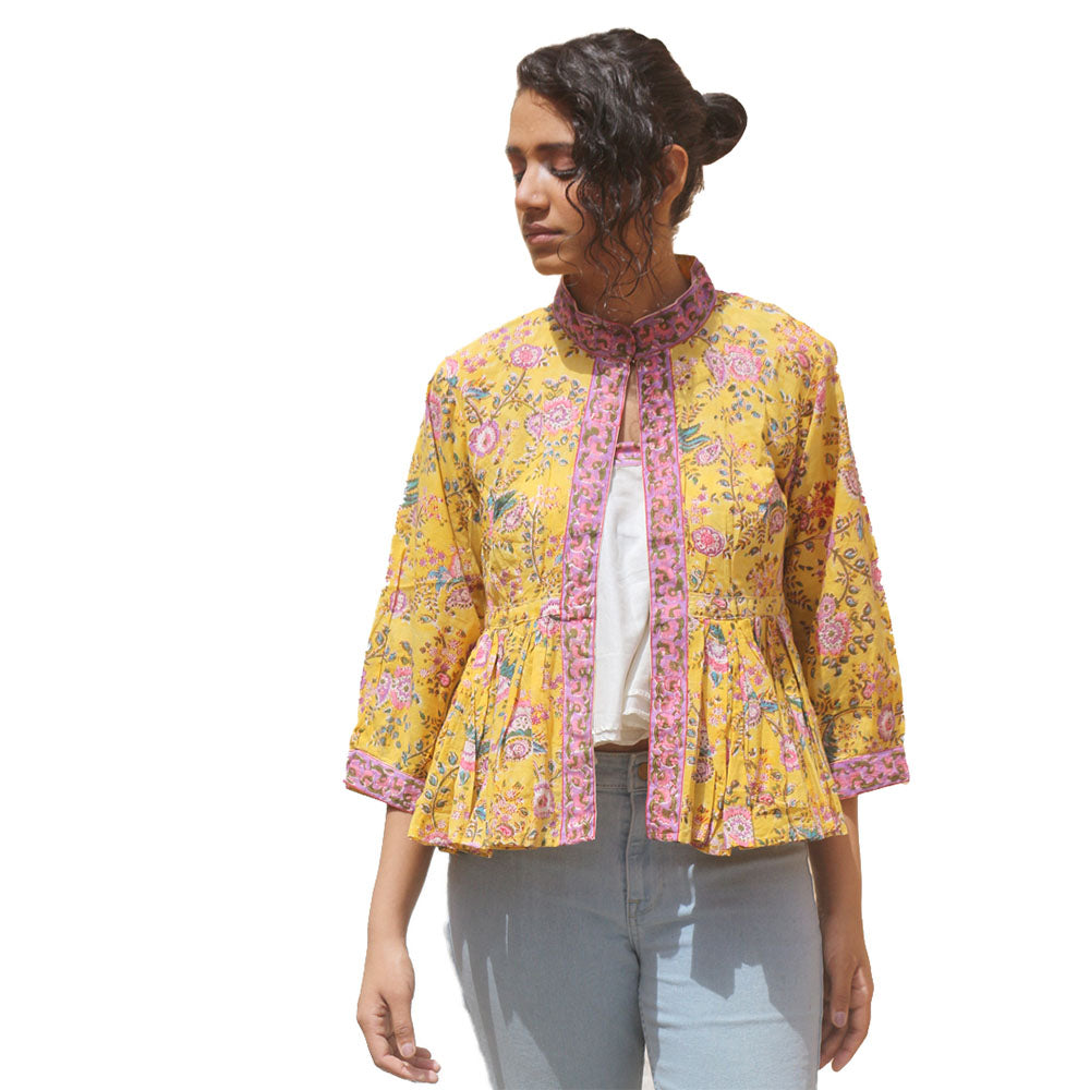 Sunshine Chic: 2-Piece Yellow Cotton Jacket and Tube Top Ensemble