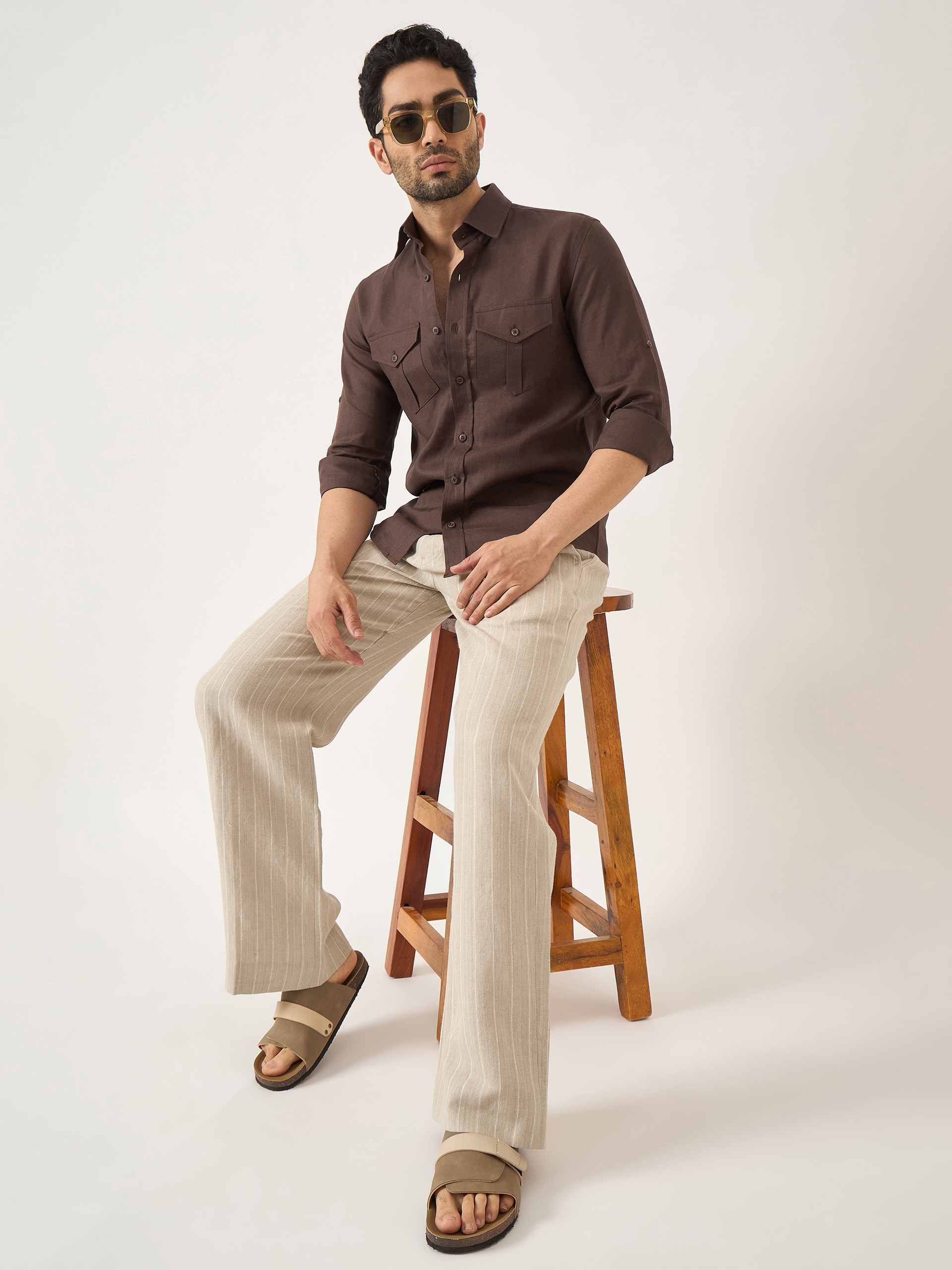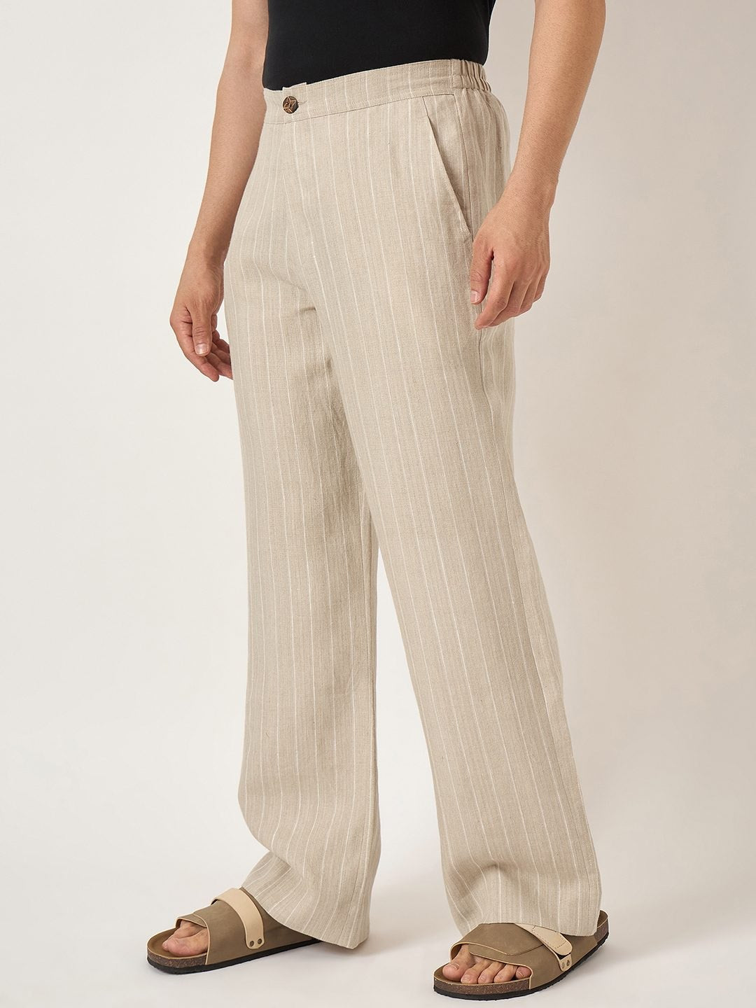 These beige striped pants are crafted from 100% linen, making them perfect for casual comfort with a breezy feel. The back elastic waistband adds a playful twist, ensuring a snug fit while keeping things easy and relaxed. Ideal for laid-back days when you want to look effortlessly cool!