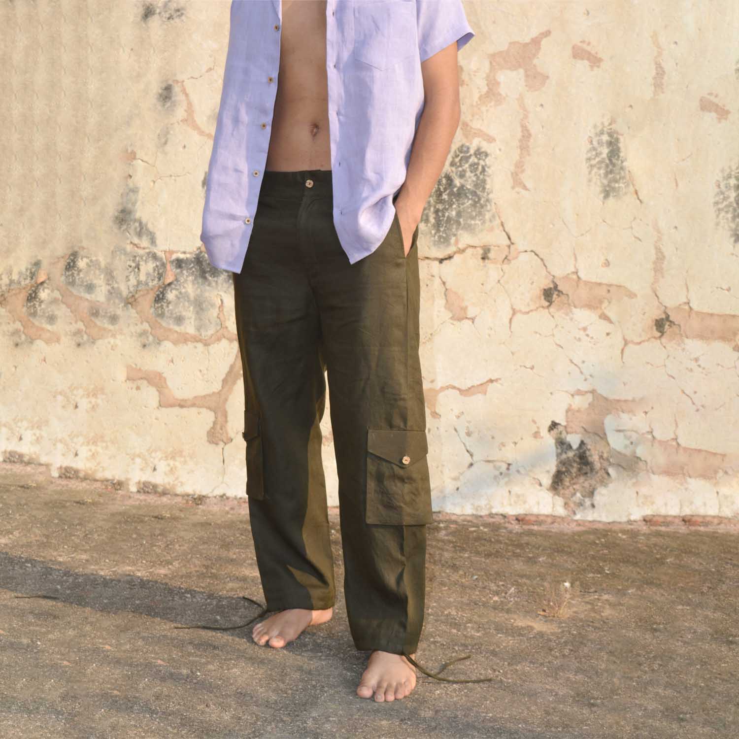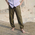 Get ready for your next Verdant Adventure with these olive linen casual cargo pants! Stylish 4 pockets and a Adjustable drawstring at the bottom will keep you looking chic and comfortable! Whether you're out for a stroll or an epic hike, these pants have got you covered!