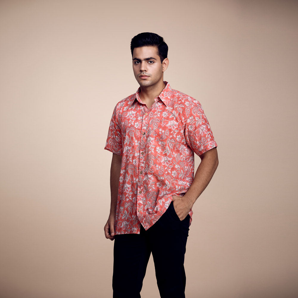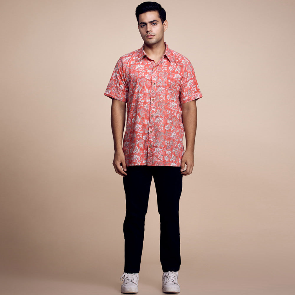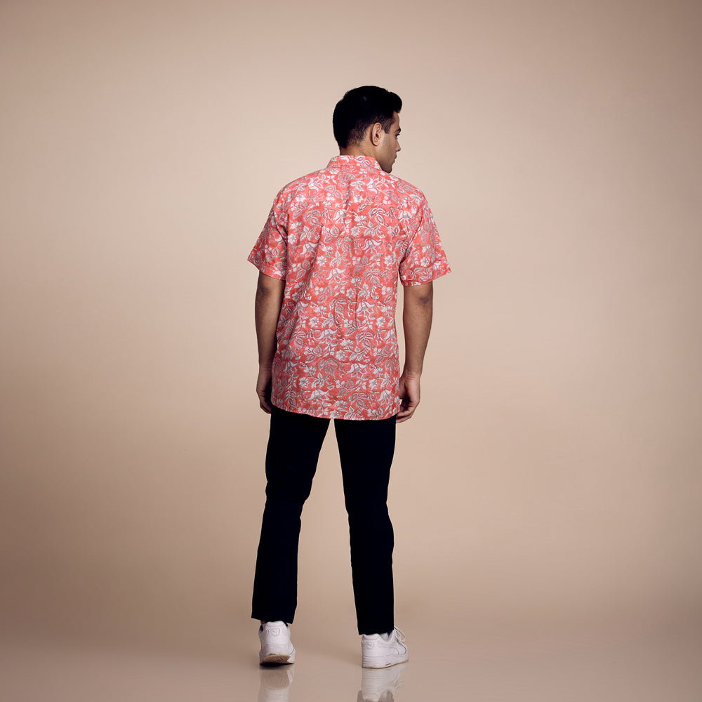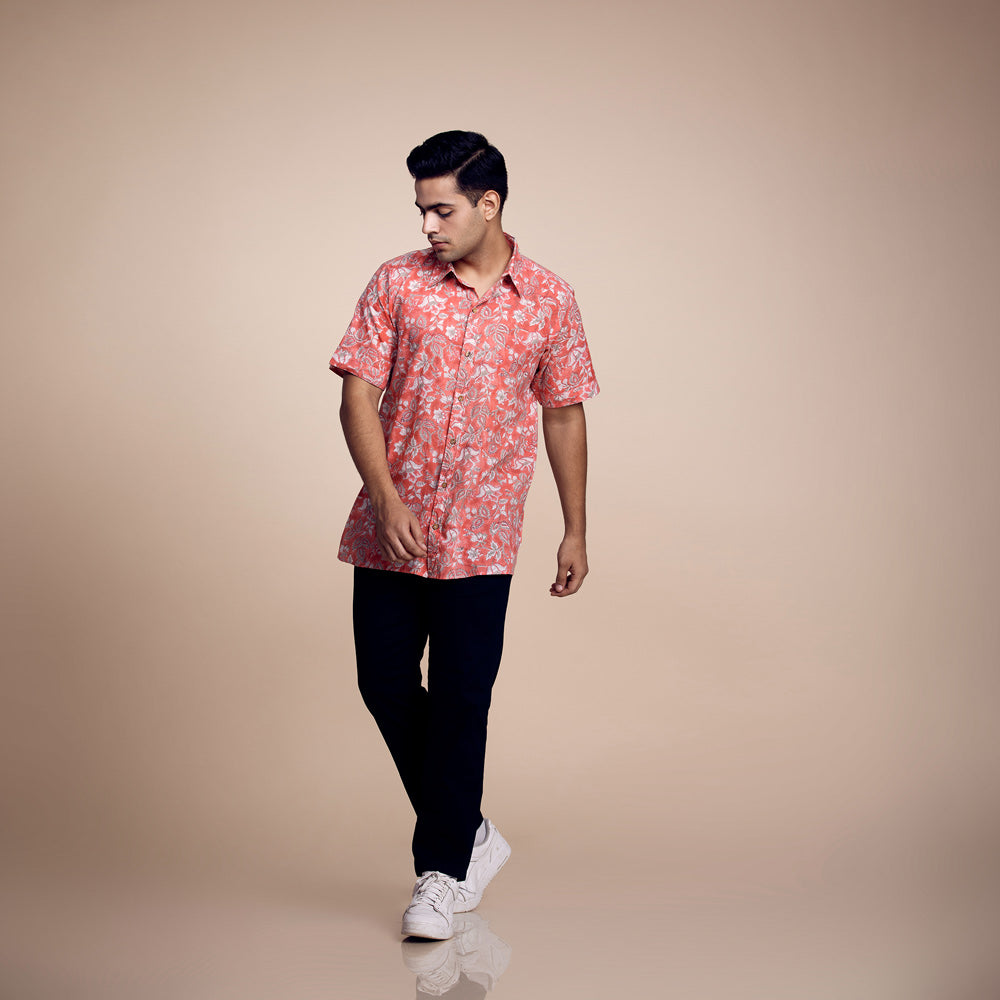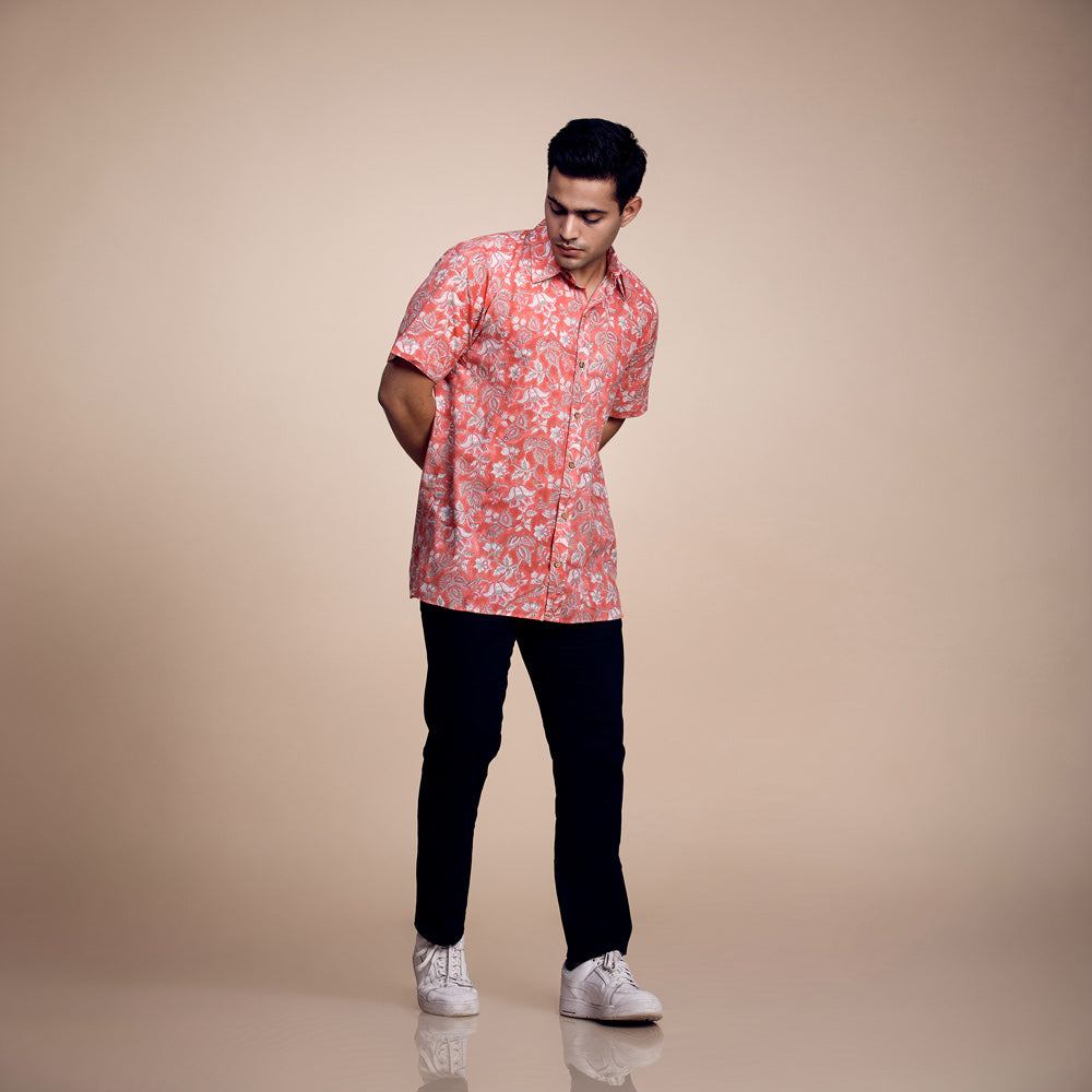 Vibrant Citrus Blossom: Printed Orange Cotton Shirt
