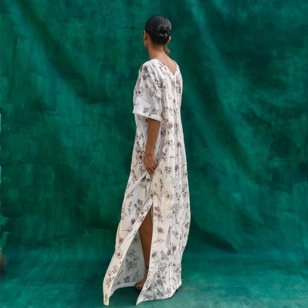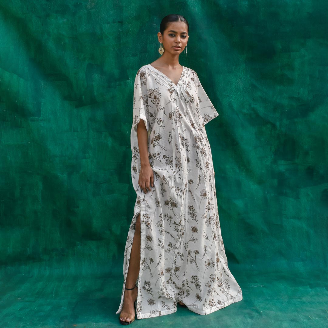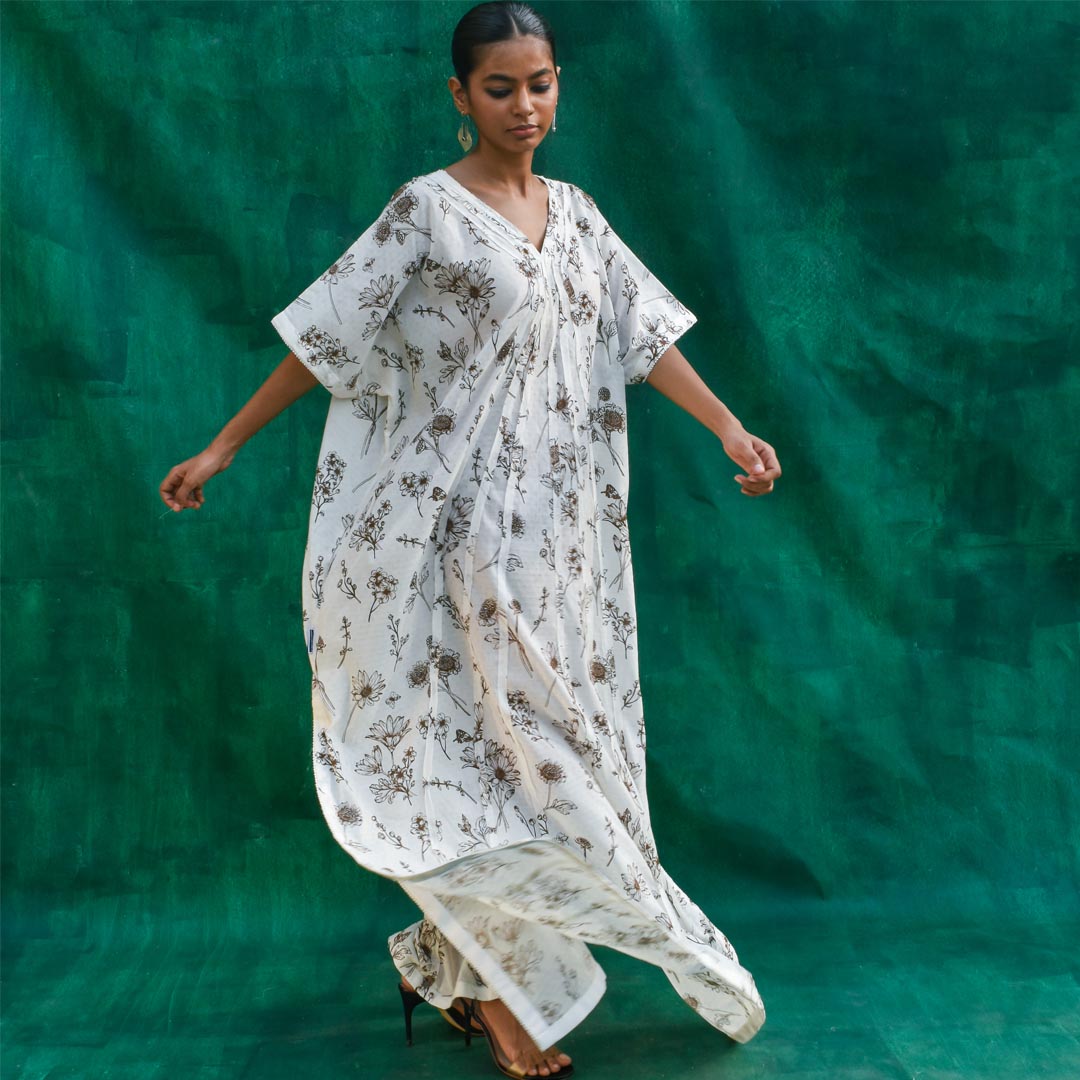 Unleash your inner fashionista with the Raajsi Kaftan! Made with soft and eco-friendly organic cotton, this stylish piece is both comfortable and chic. The intricate lace and front fabric texture details add a touch of class to any outfit. Elevate your wardrobe with this printed kaftan.
